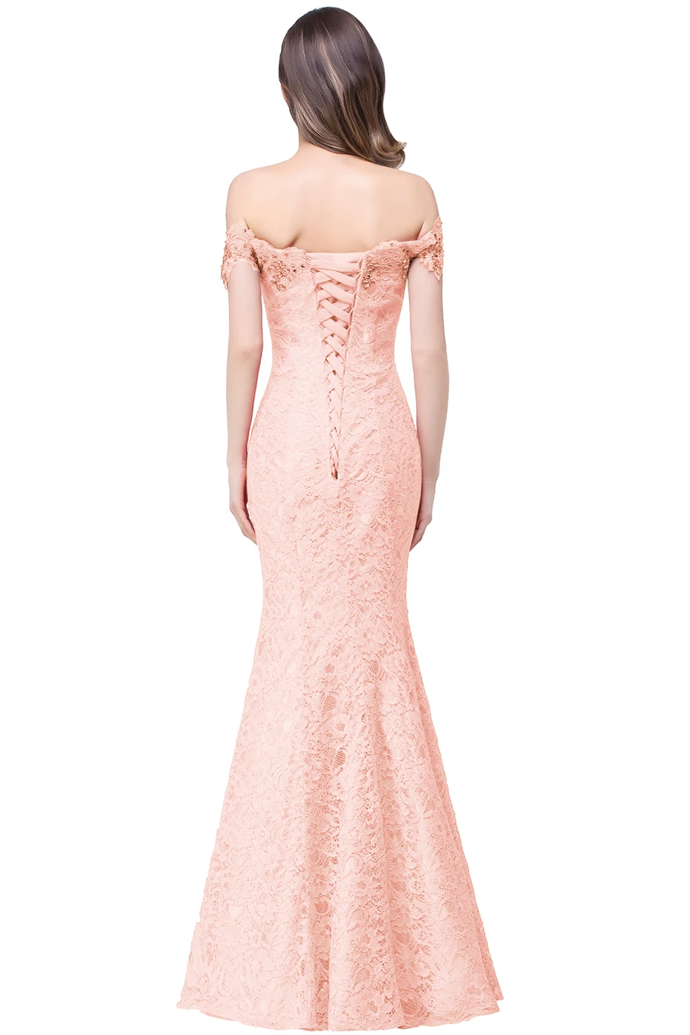 Женское вечернее платье без рукавов Misshow, розовое кружевное длинное платье с открытыми плечами, 2021
