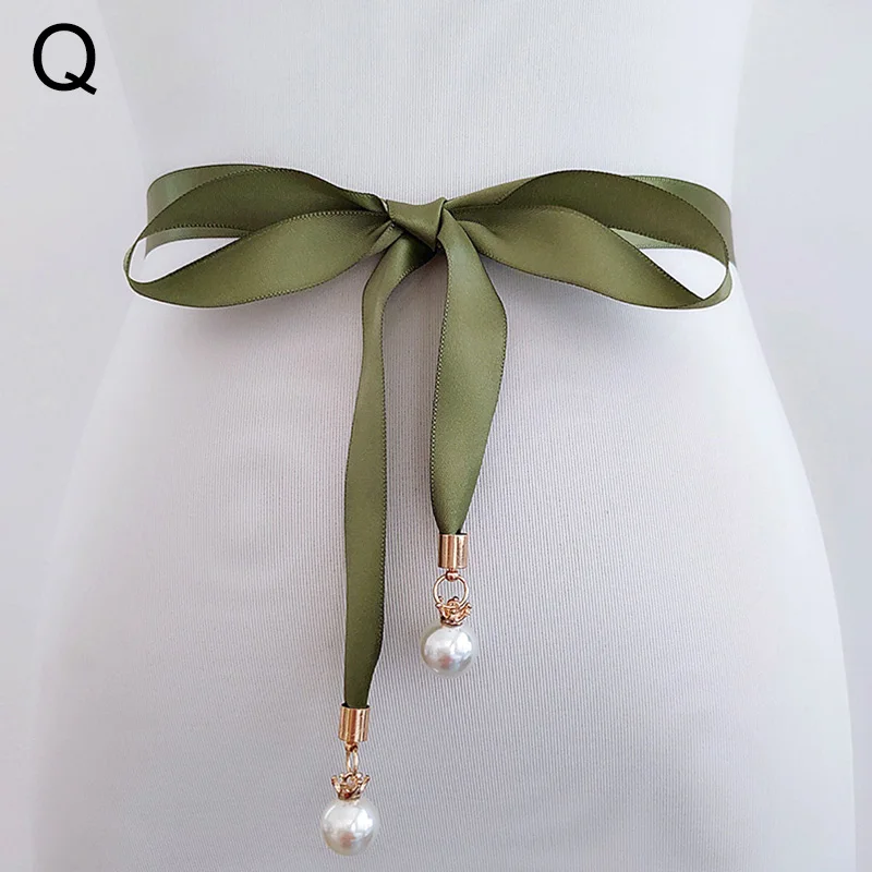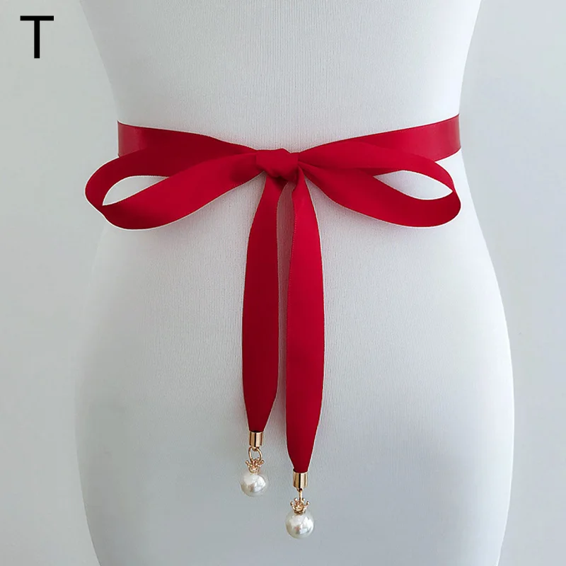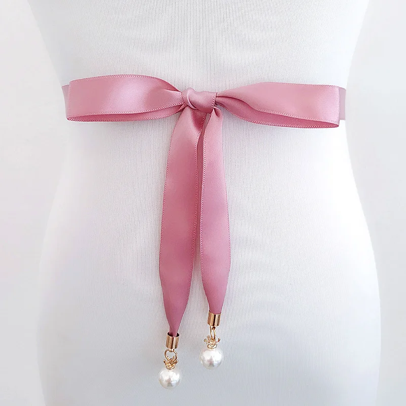 Женские модные ремни, пояс с тонким жемчугом, пояс с подвеской, веревка для платья, пояс с кисточками, пояс с узлом, узкая лента, оптовая продажа
