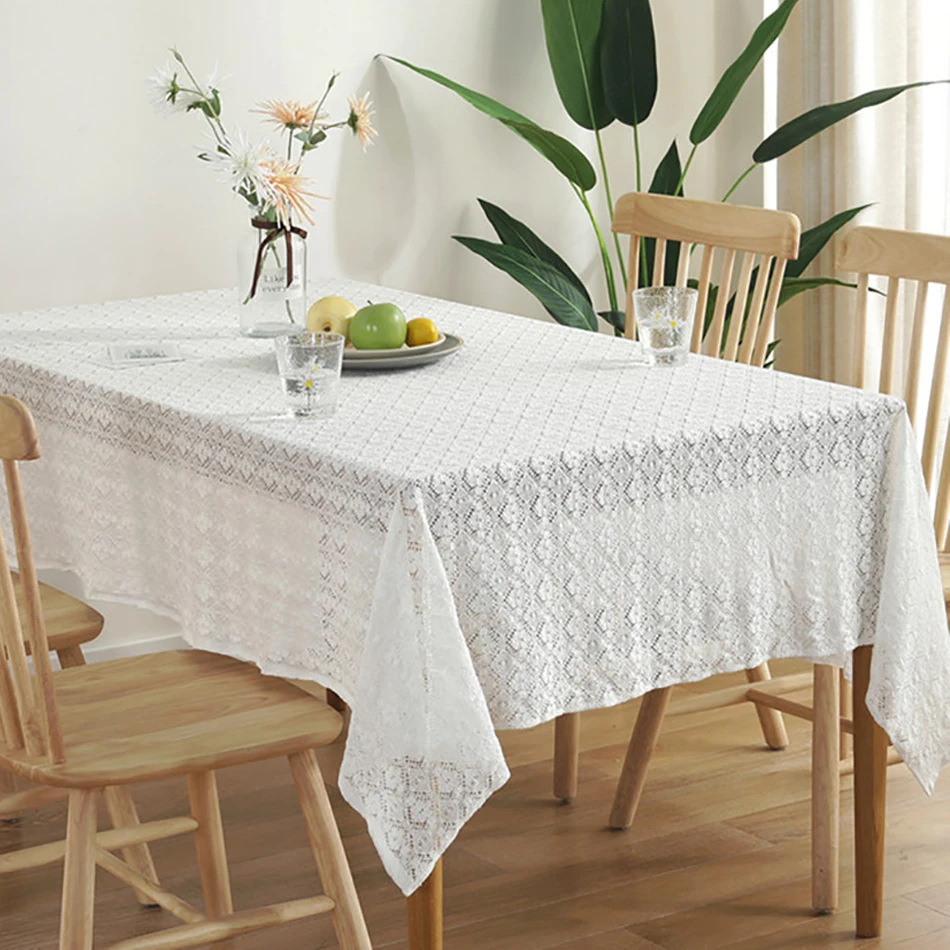 Скатерть хлопковая кружевная с вышивкой, белый прямоугольный столик для гостиной, домашний декор для свадьбы