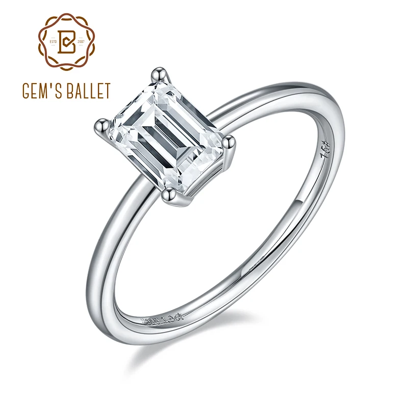 Gem балетки изумрудная огранка простой Муассанит солитер Обручение кольцо для Для женщин 925 пробы серебряные кольца с муассанитом 1.0Ct 5*7 мм