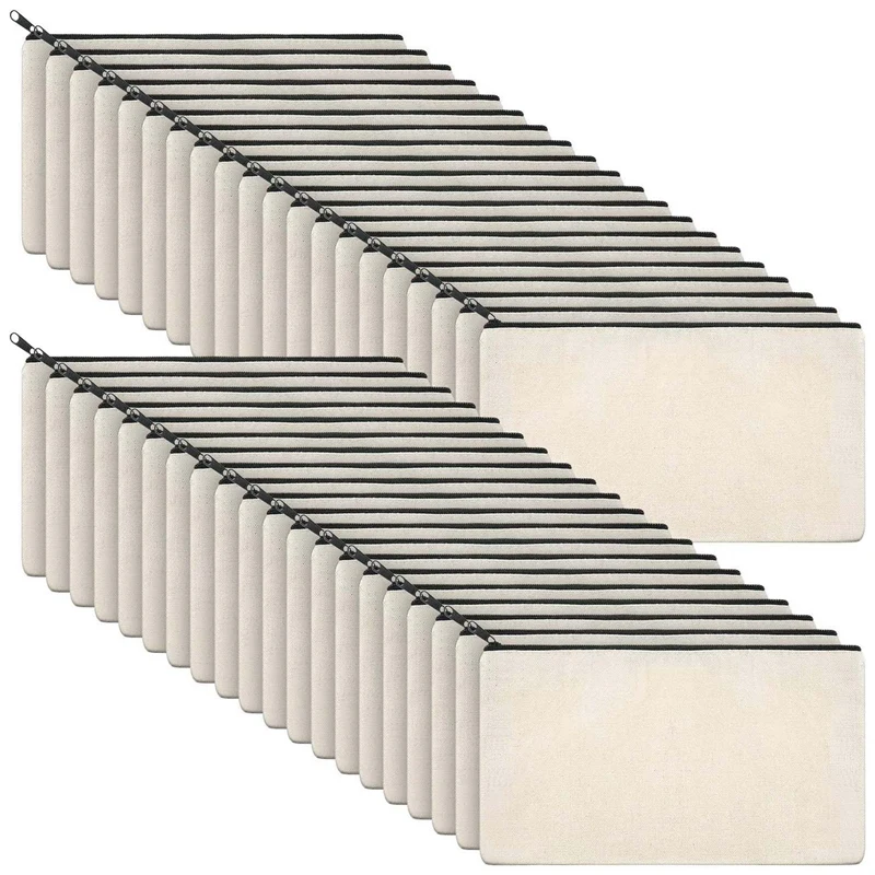 Холщовые сумки на молнии, Холщовый пенал, холщовые сумки для макияжа, чистый холщовый чехол для карандашей, сумки для поделок сделай сам, косметичка, сумка для макияжа