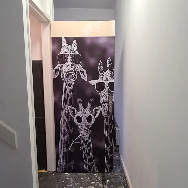 Мы разрезаем дверную наклейку на две части перед отправкой из-за международной политики доставки. Это будет дешево касательно стоимости доставки. Но если вам нужна цельная наклейка на дверь, пожалуйста, свяжитесь с нами, чтобы найти другое решение.