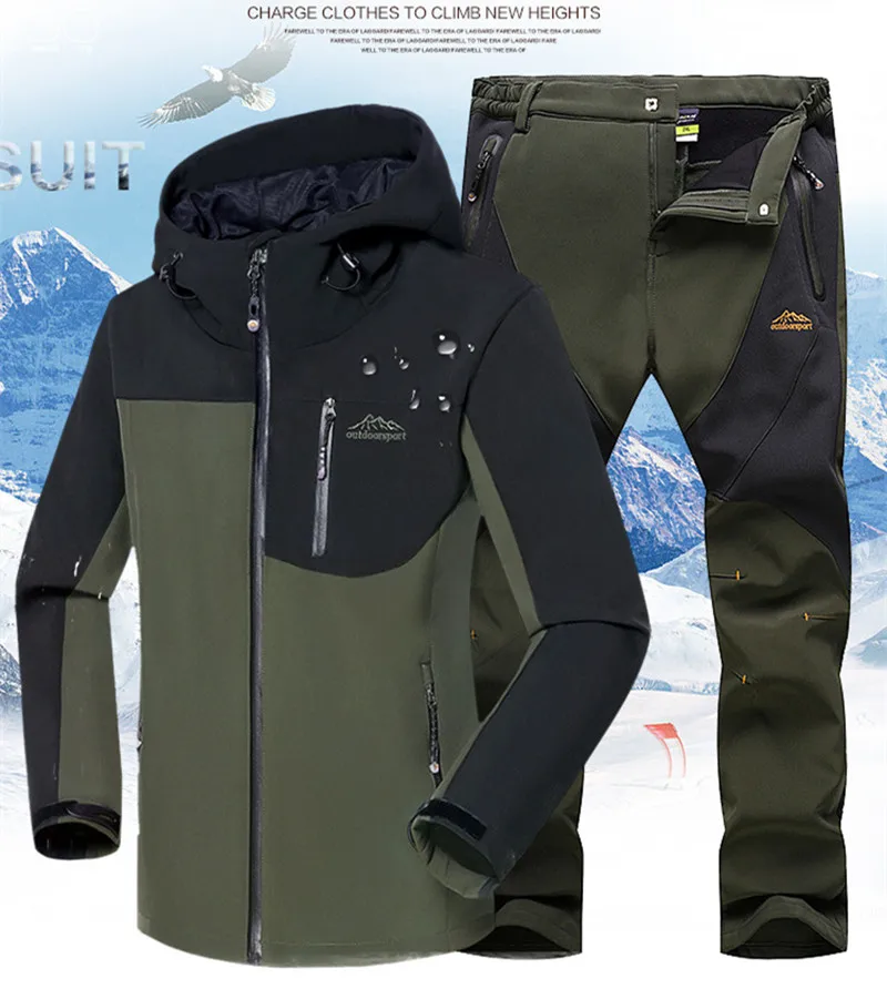Комплект походной куртки для мужчин, водонепроницаемый, ветрозащитный, теплый Флисовый жакет и брюки, для активного отдыха, походов, скалолазания, лыж