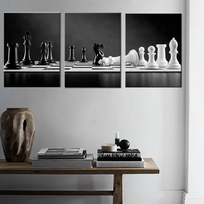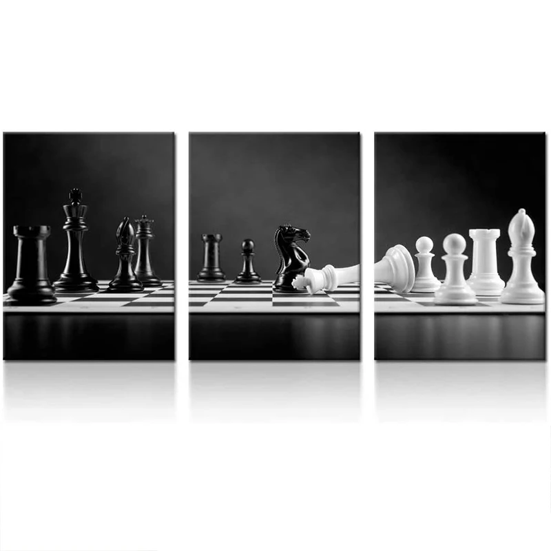 3 Панели, Современная черно-белая шахматная доска, холст, настенные художественные плакаты, принты, шахматная доска, картины, натюрморт