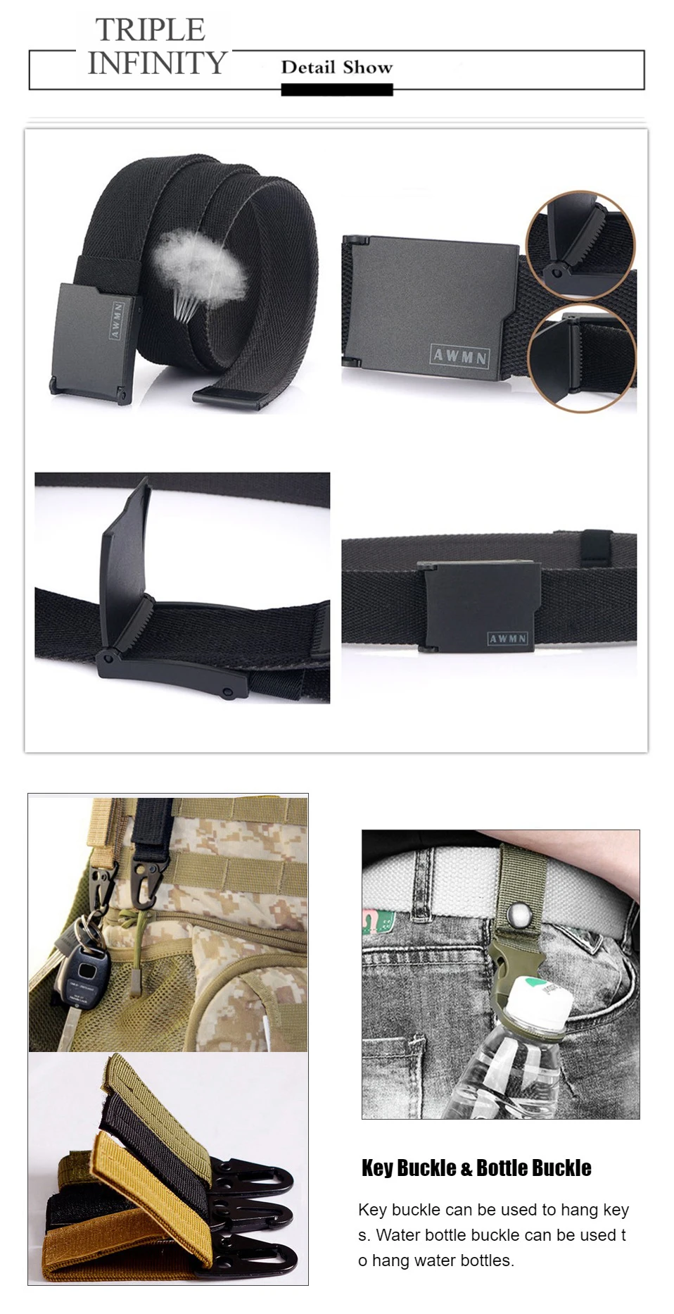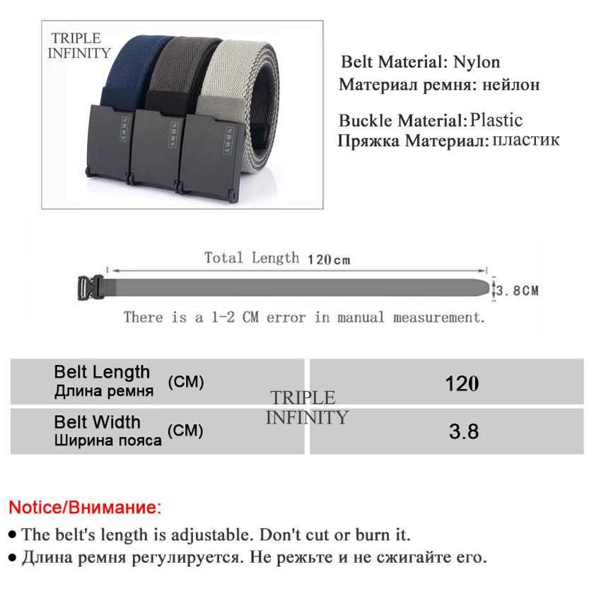 Нейлоновый ремень с тройной бесконечностью для мужчин, Регулируемый...