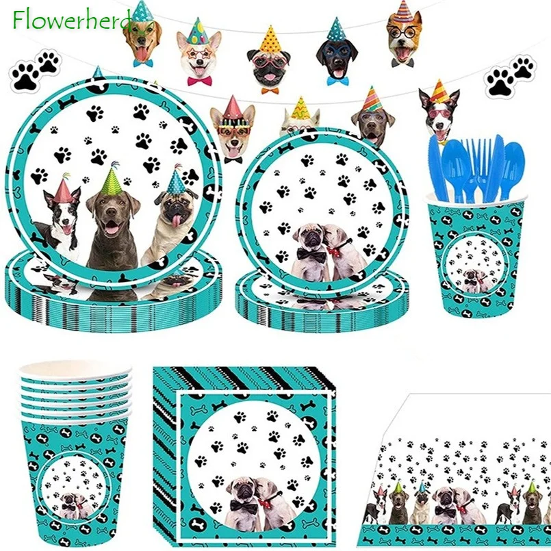 Набор одноразовой посуды в виде собаки, праздничное украшение для дня рождения, бумажный стаканчик, тарелка, нож, вилка, ложка