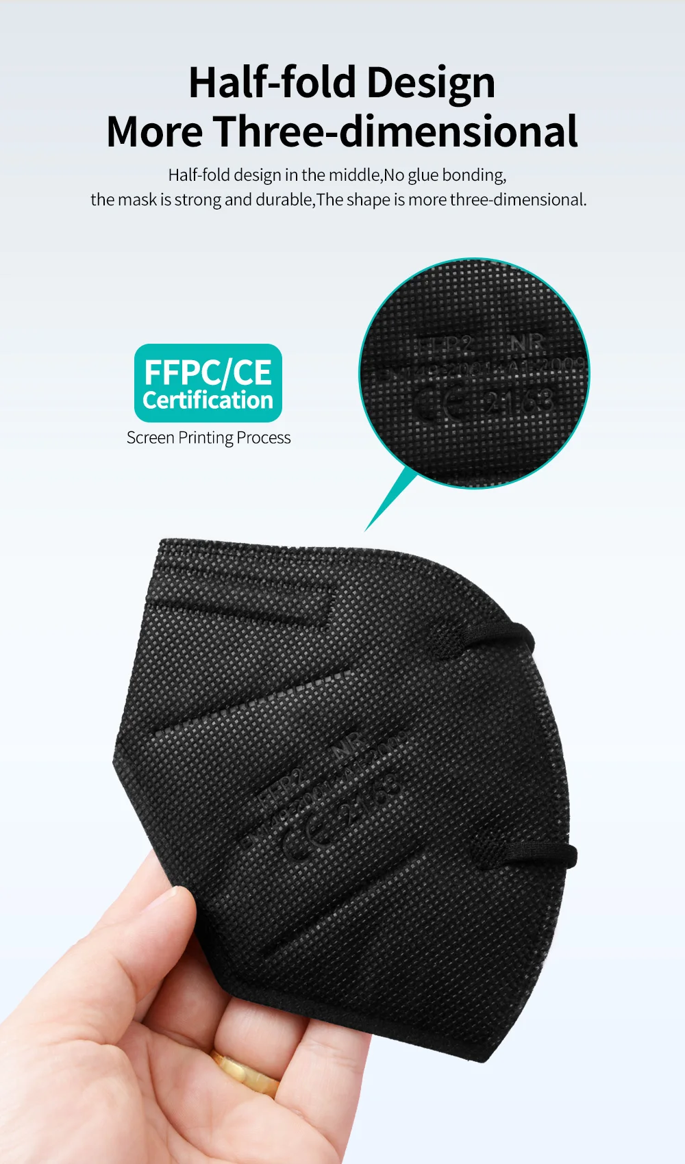 Черные FFP2 маски Kn95 ffp2mask одобренные CE гигиенические маски м...