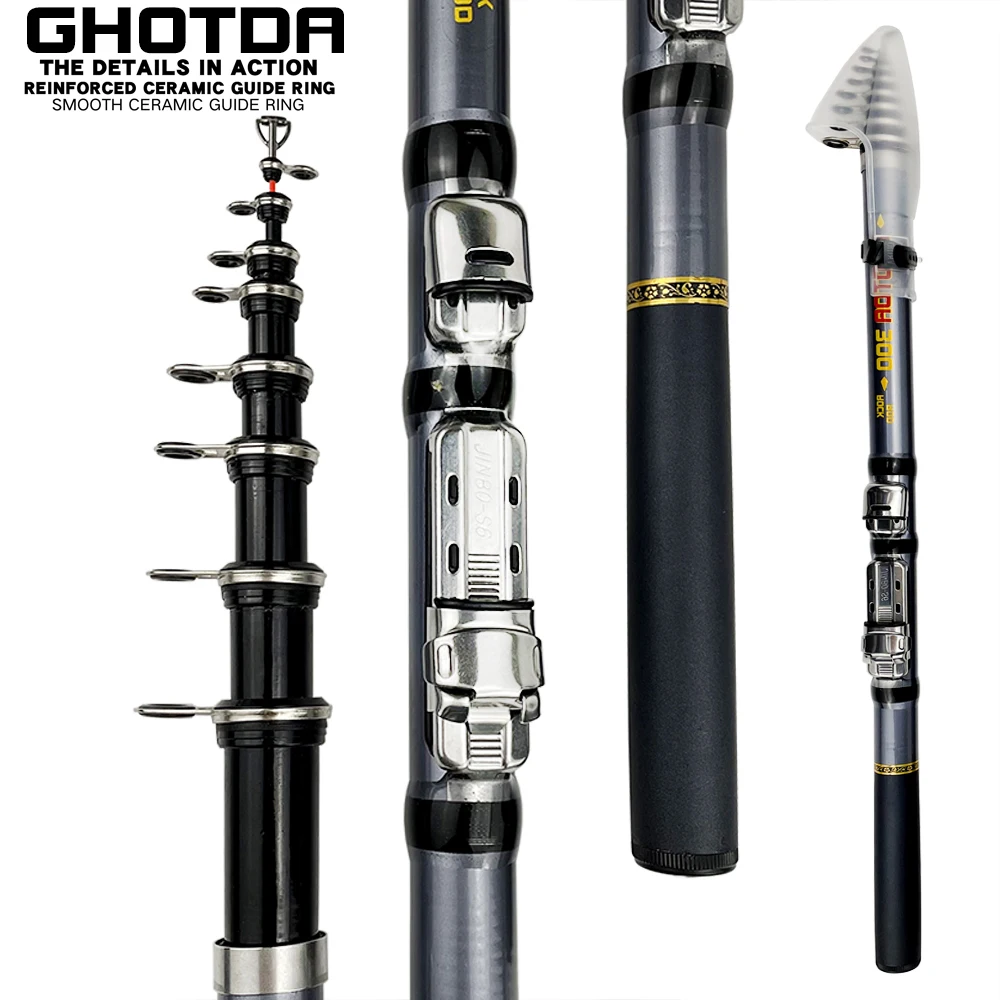 Телескопическая рыболовная удочка GHOTDA, спиннинговое удилище из углеродного волокна для ловли карпа 3 м, 2,7 м, 2,4 м, 2,1 м, 1,8 м, 1,5 м, мини-удилище для путешествий