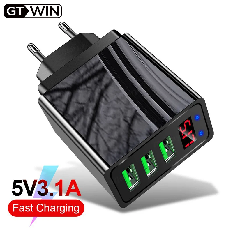 Быстрое зарядное устройство GTWIN с 3 USB-портами для iPhone 12 Pro Max Samsung S21 Xiaomi, быстрая зарядка для сотового телефона QC 3,0, зарядное устройство со светодиодным дисплеем