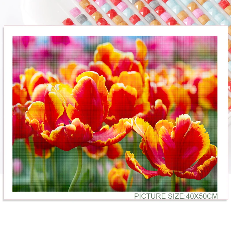 Тюльпан Цветочное поле 5D Сделай Сам полный квадратный круглый моза...