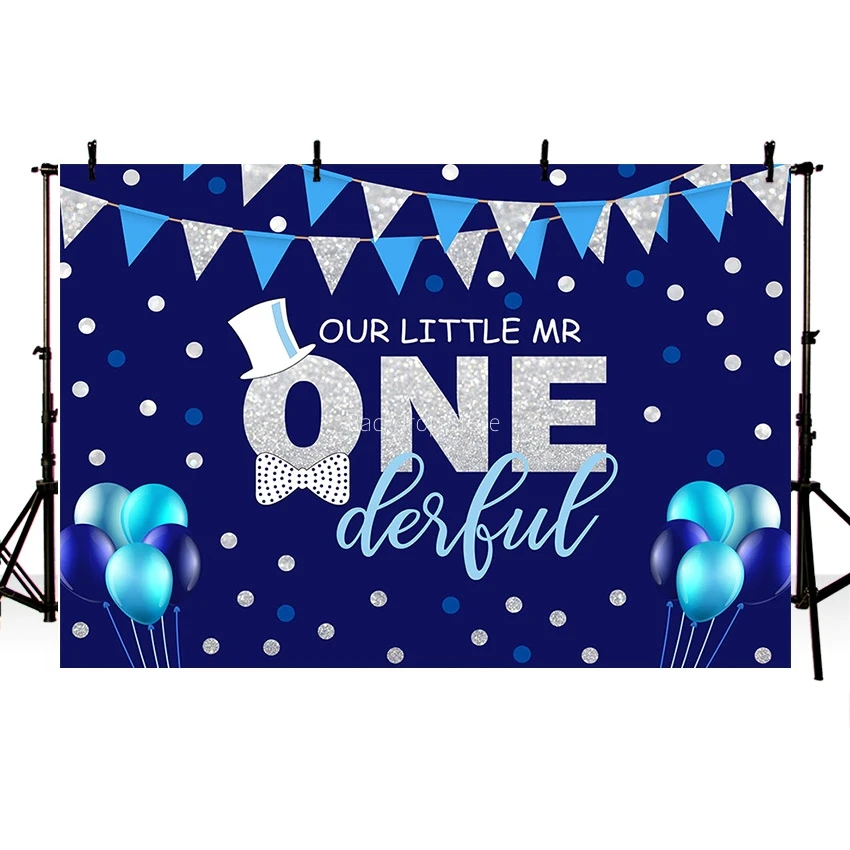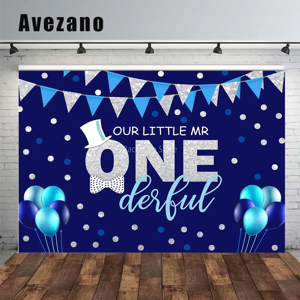 Avezano Mr Onederful Backdrop новорожденный мальчик первый день рождения Декор воздушные шары горошек голубой фон для фотосъемки фотосъемка