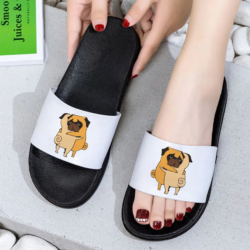 Шлепанцы женские с открытым носком, сланцы для пляжа, домашние сандалии, симпатичные, маленькая свинка и мопс, лето 2021