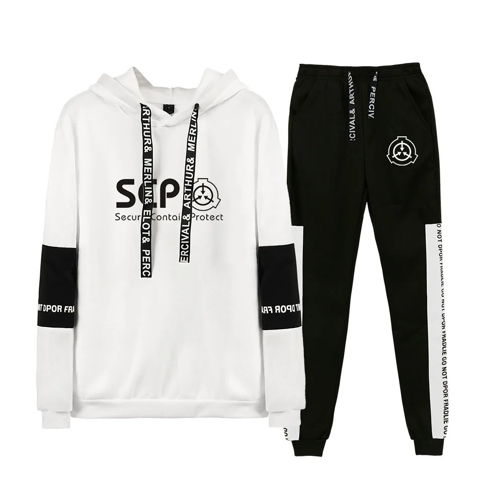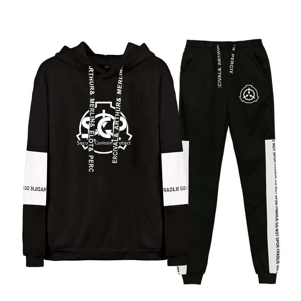Модный спортивный комплект для мужчин и женщин, черные толстовки с капюшоном, свитшотыспортивные брюки, комплект из двух предметов, костюм с капюшоном, осенний спортивный костюм Scp Foundation