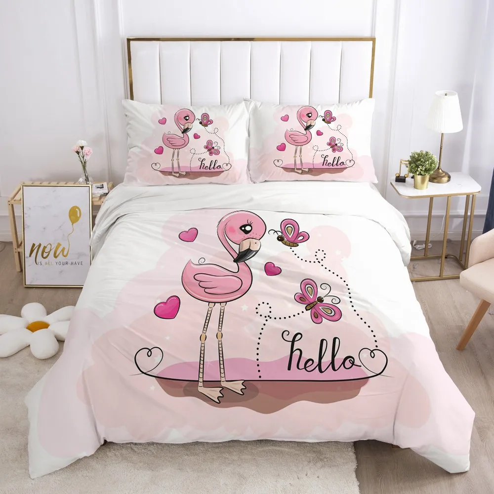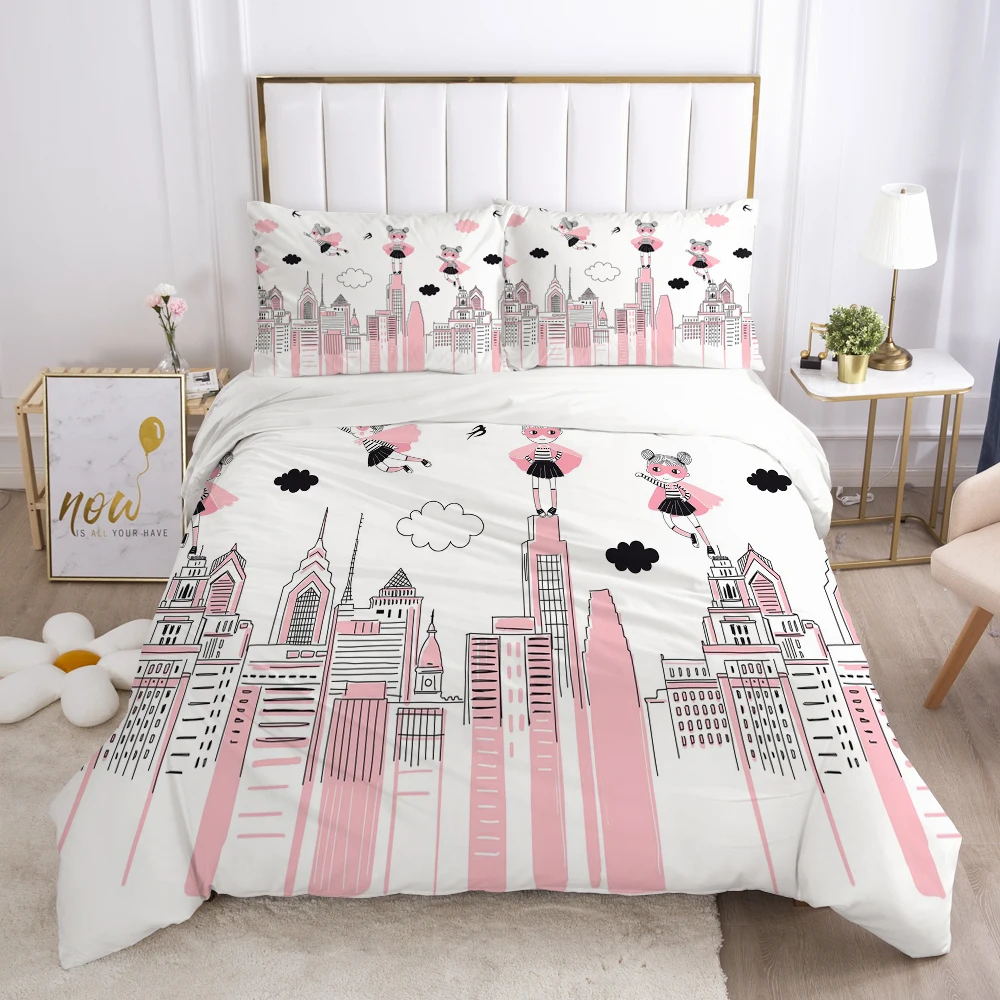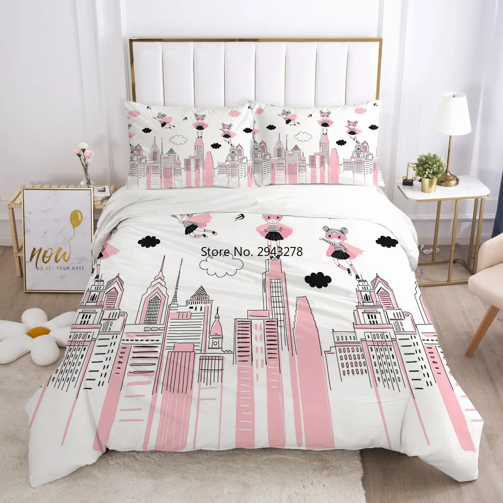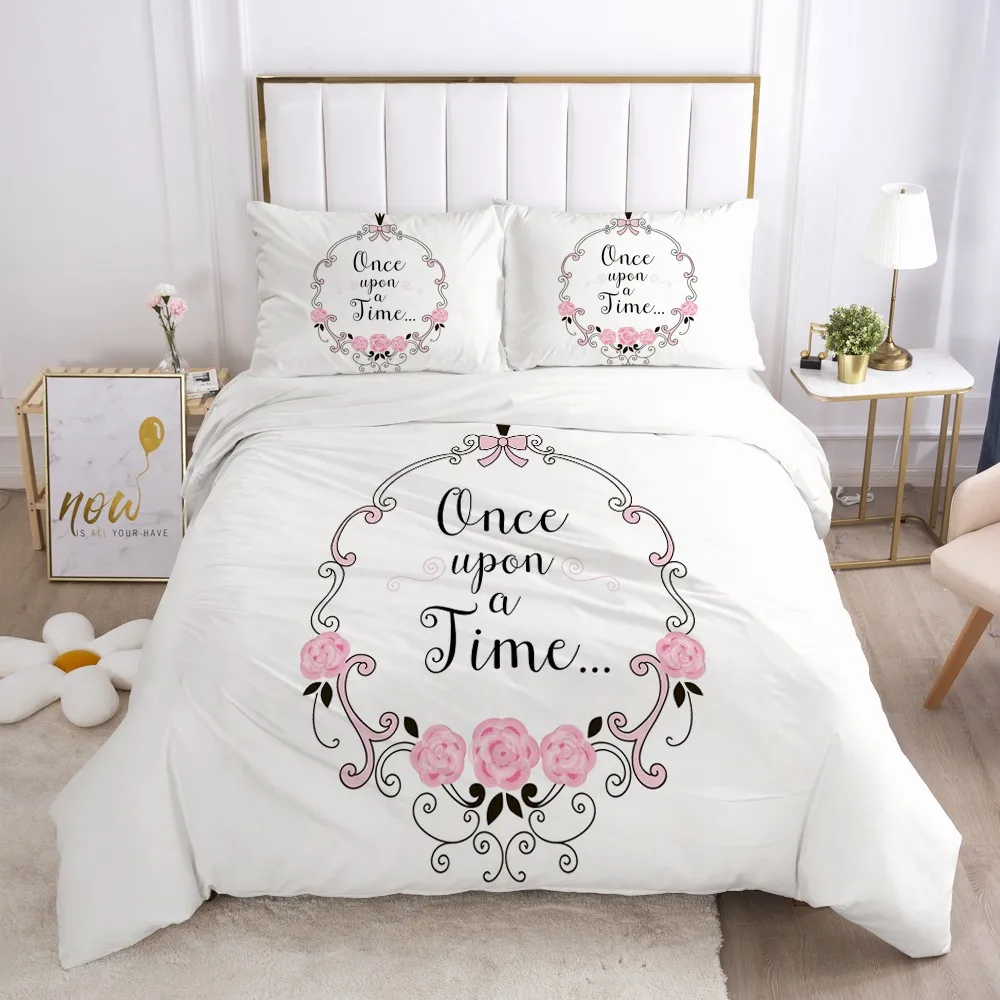 Комплект постельного белья розового и белого цвета для маленьких детей, Детский Комплект постельного белья с мультяшными принцессами для кроватки, пододеяльником, наволочкой, пододеяльником, милым королевским размером