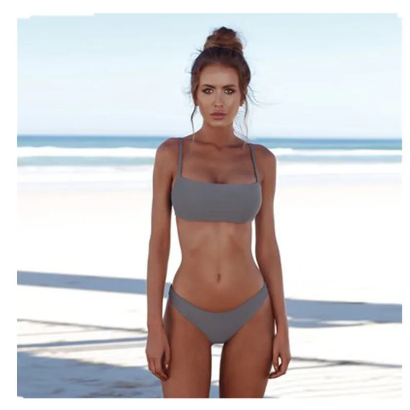 Женский бикини с высокой талией, летний Бразильский бикини, сексуальный набор Пуш-ап бикини, однотонный купальник, два предмета, сплошной купальник, купальный костюм