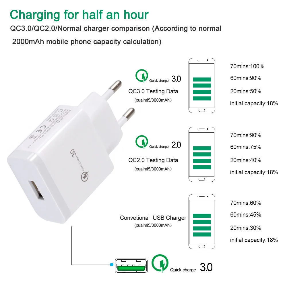 -Быстрое Зарядное устройство USB 18 Вт QC 3,0