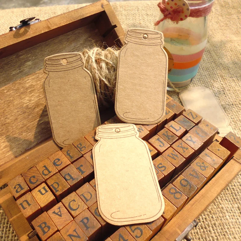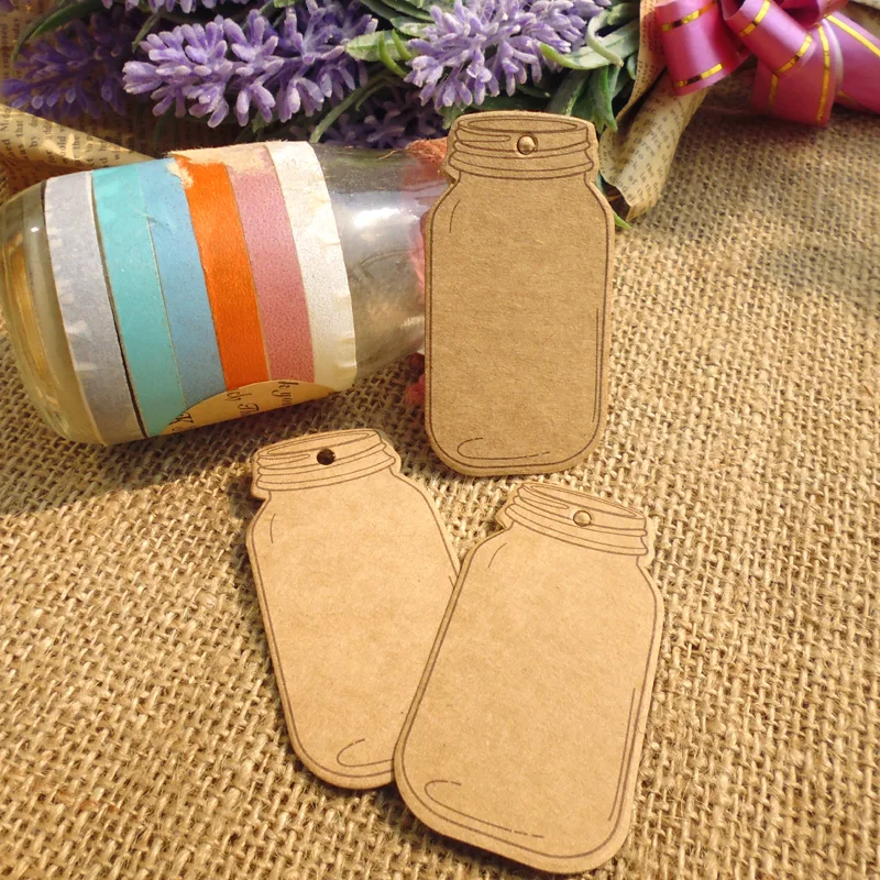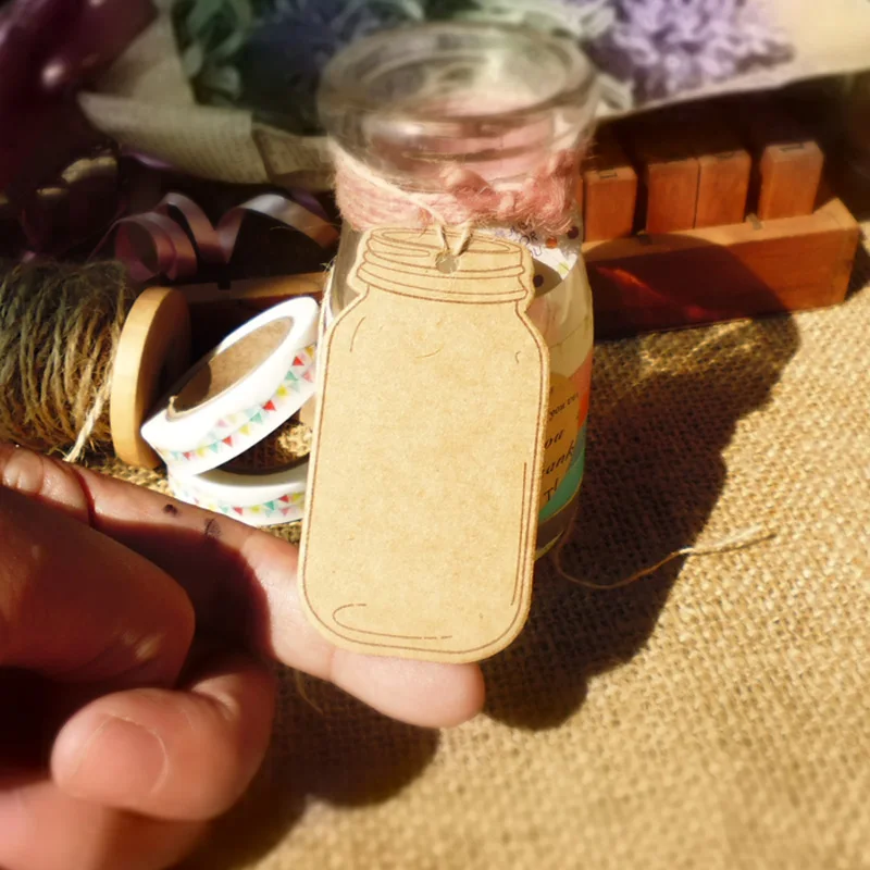 50 шт.лот, Подарочная бирка из крафт-бумаги в форме бутылки, винтажные стильные бирки в виде каменной банка, бумажные бирки для свадебвечерние, ценник, бирки-подвески