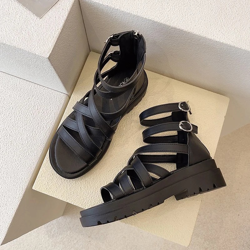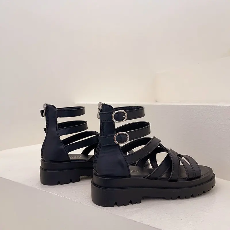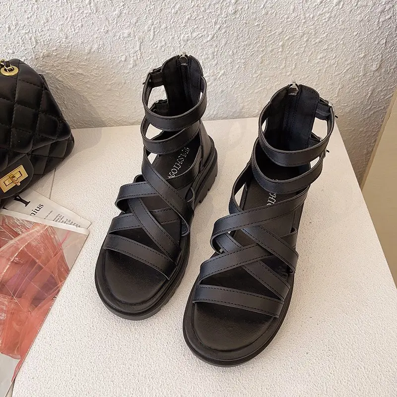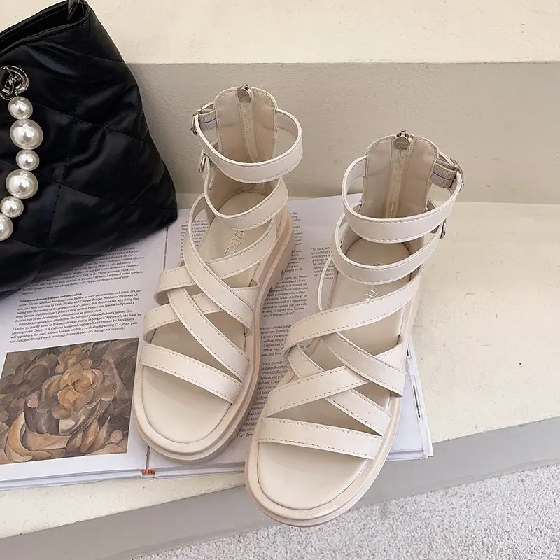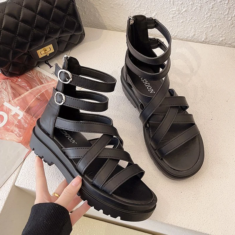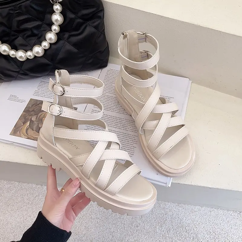 Сандалии женские высокие, босоножки с сетчатым верхом, на низком каблуке, на молнии сзади, римские модные повседневные пляжные туфли, BC238, весна-лето