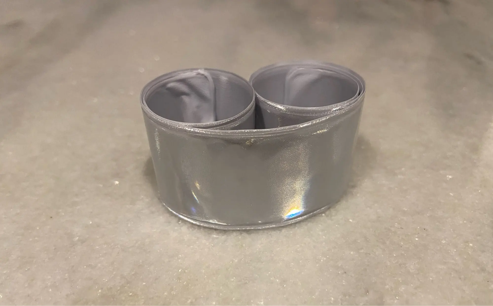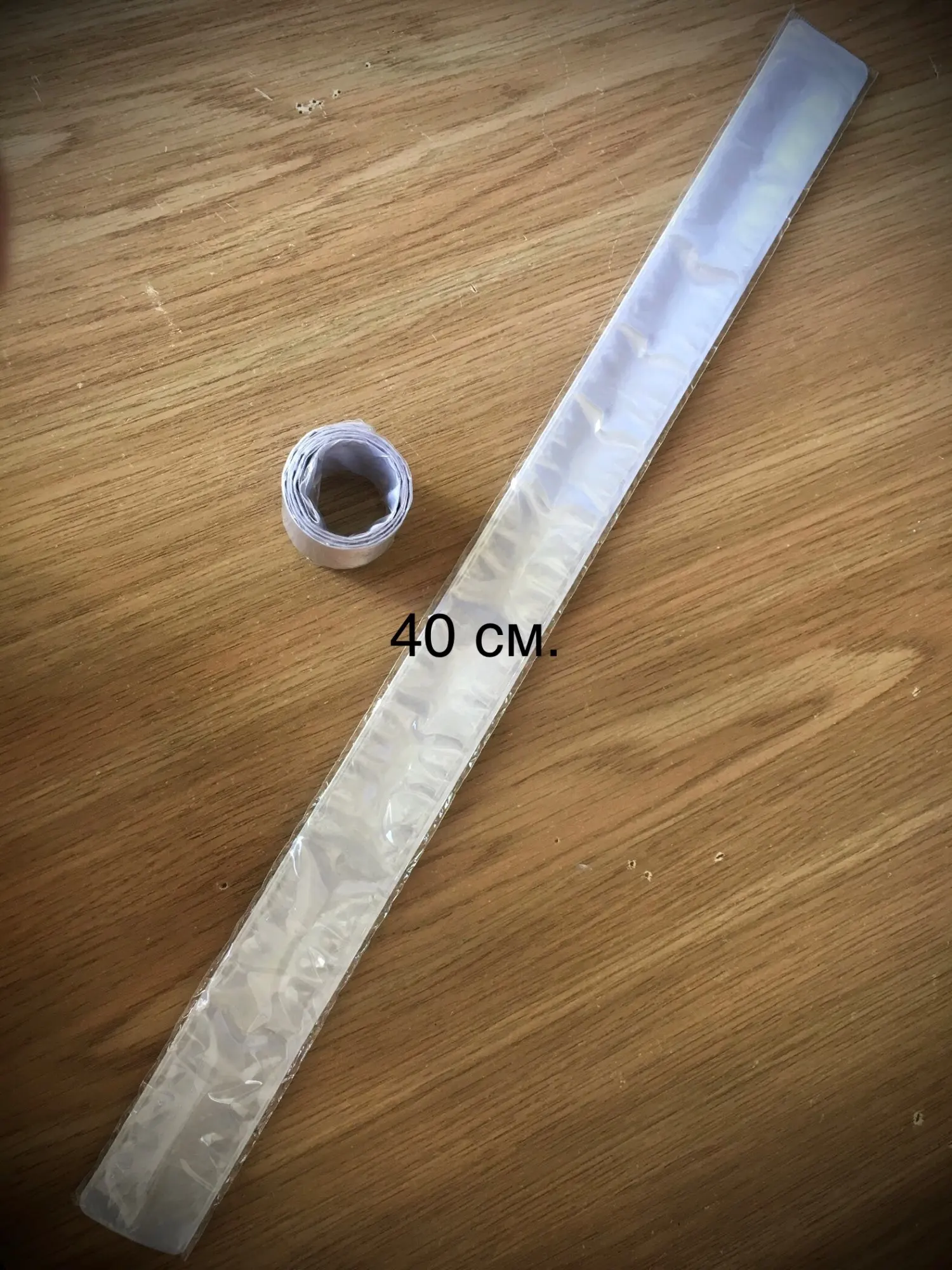 Біла більш менш краща ніж зелена. Щось відбиває. Всередині металева стрічка яка стискається в кільце що дає змогу фіксувати на руку/ногу/кермо та раму велика. За свої кошти ок. Й найголовніше - пyтін хyйло