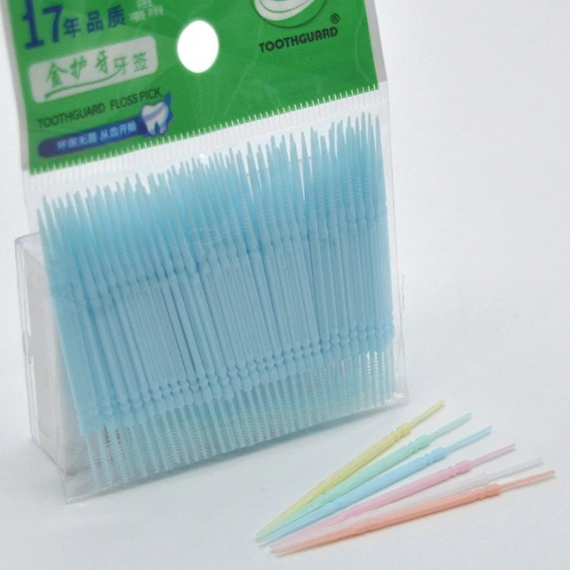 100 шт.коркор. зубная нить с двойной головкой, межзубный зубочистка...