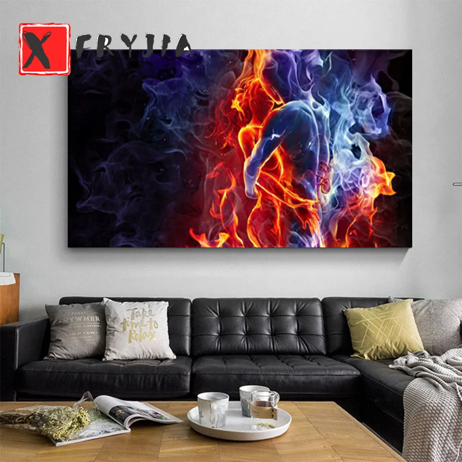 Алмазная живопись сделай сам, абстрактное искусство, лед и огонь, 5D Алмазная мозаика, полная выкладка, алмазная вышивка крестиком, домашний декор