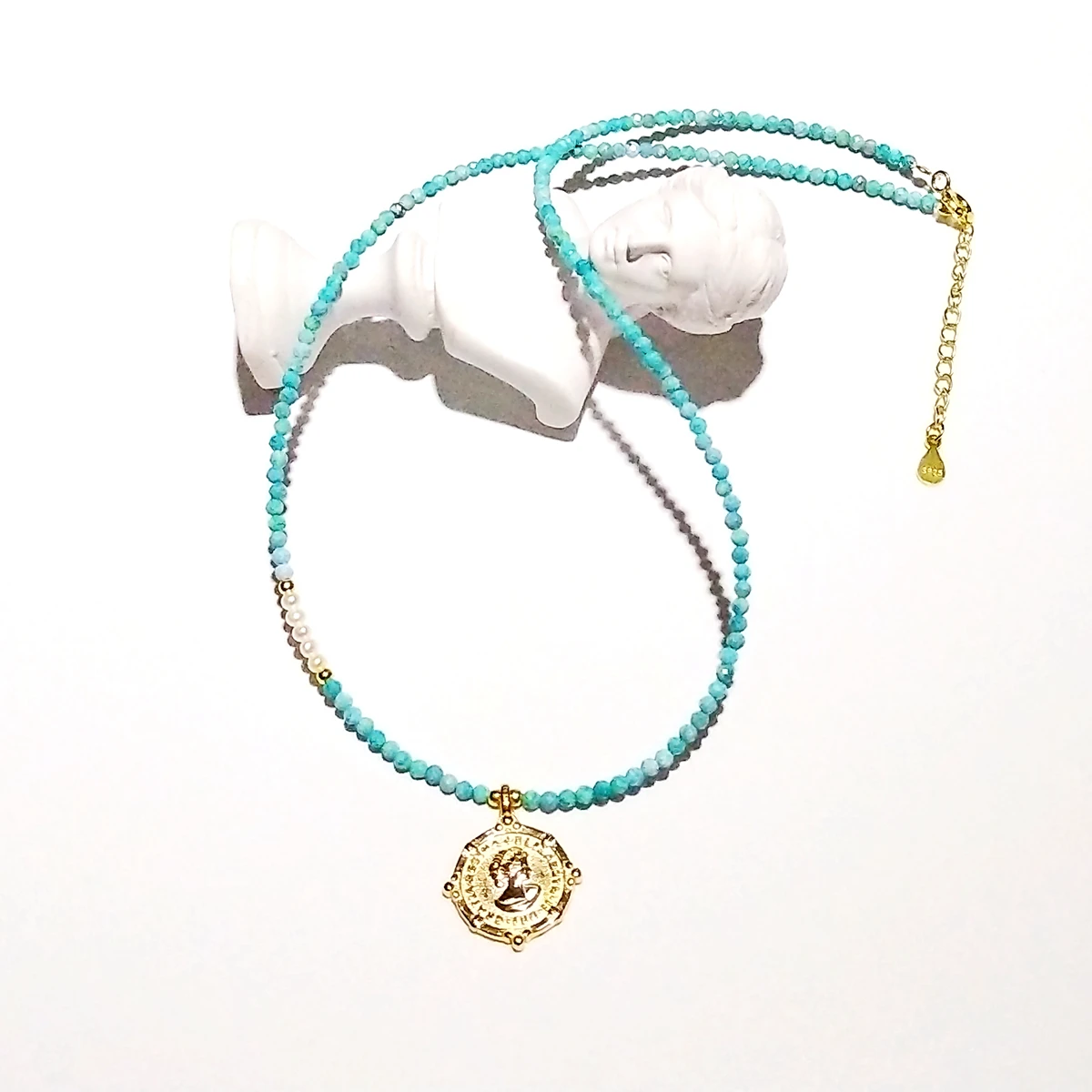 Имя: Ожерелье-чокер с бирюзовым жемчугом Вес: 10 г Размер: 2-2,5 мм Цвет: Синий Полезно: Подарок на день рождения/подарок для женщин и мужчин Форма: Круглый Тип: Ожерелье-чокер Металл Серебро 925 пробы Материал: Камень