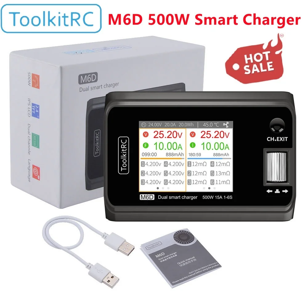 ToolkitRC M6D 500W 15A DC Двухканальное мини-зарядное устройство Dis, зарядное устройство для 1-6S Lipo батареи для RC FPV модели, замена M8