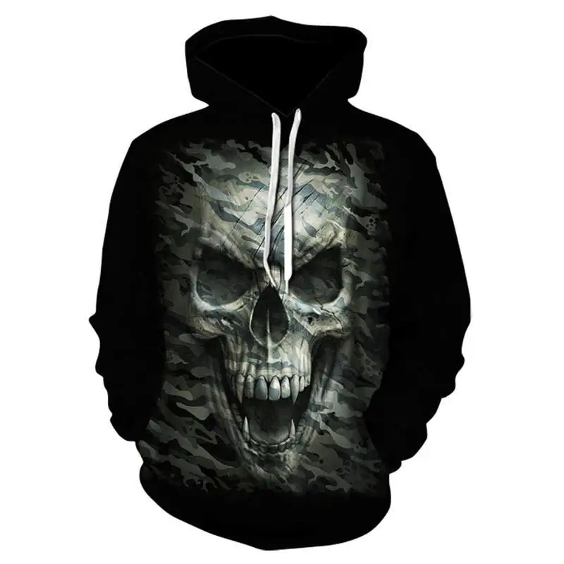 Толстовка мужская с 3D-принтом черепа, хип-хоп худи, новая уличная ...