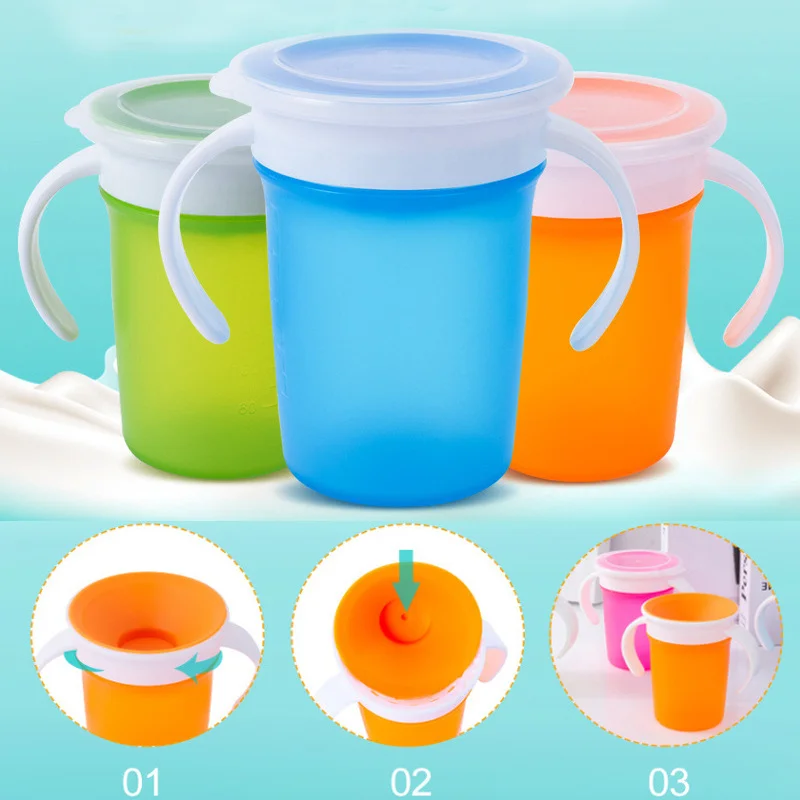 Поильник детский силиконовый с двойной ручкой, вращающийся на 220 градусов, 360 мл