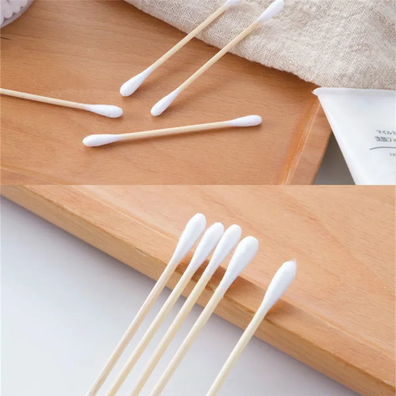 Экологически чистые бамбуковые ватные палочки с двойной головкой, ватные палочки для красоты, макияжа для взрослых, деревянные палочки, инструмент для носа 1000, 2000 шт.