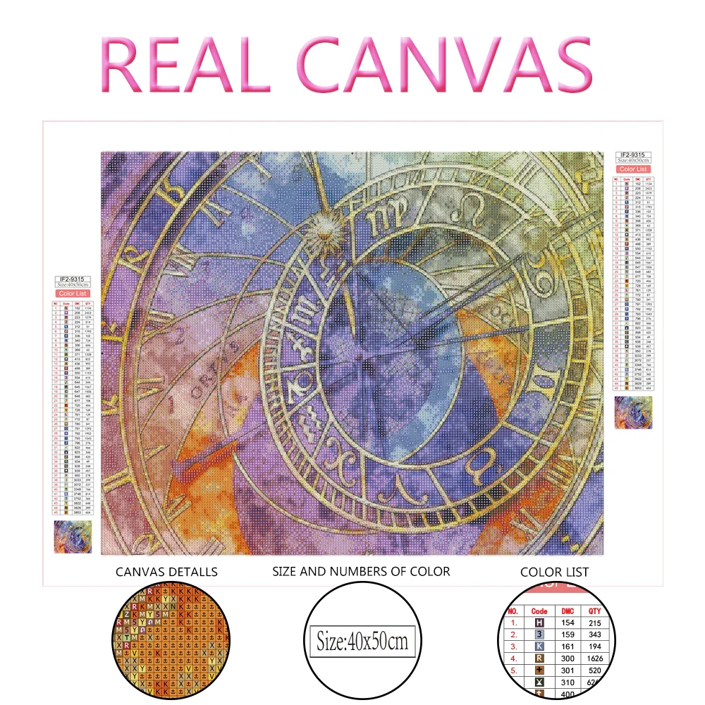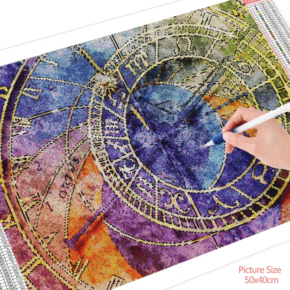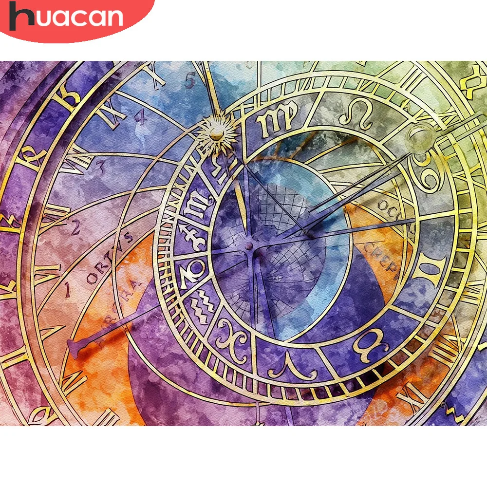 Алмазная вышивка HUACAN, полностью квадратнаякруглая картина, часы, вышивка крестиком, подарок ручной работы, украшение для дома