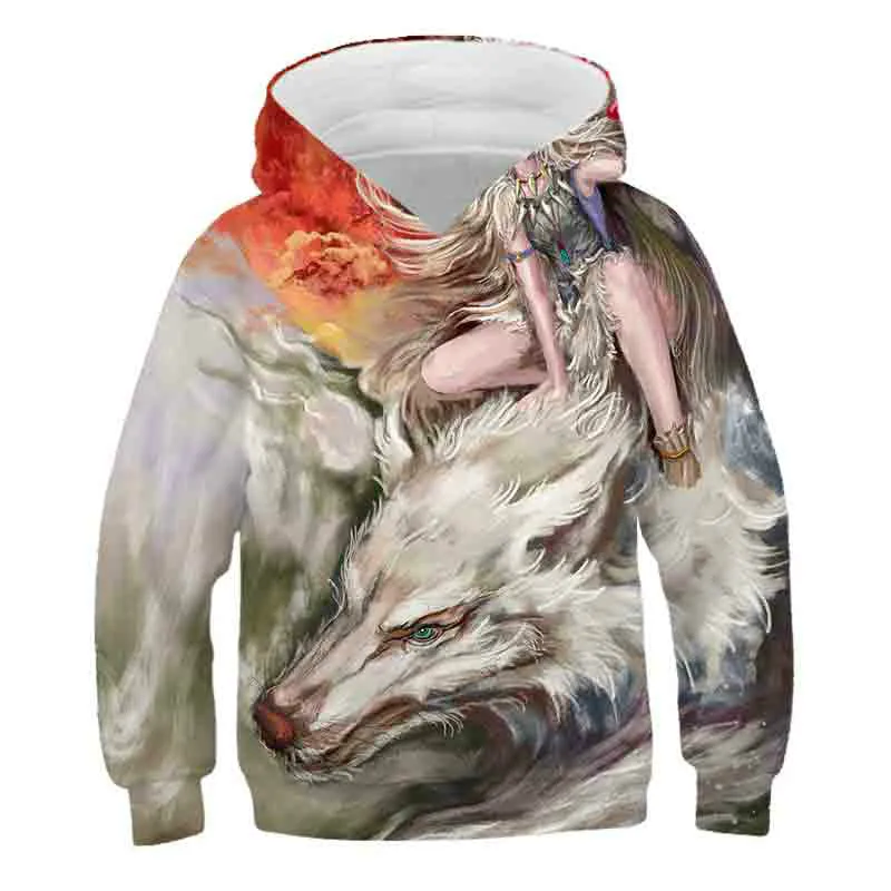Детская толстовка с капюшоном, с 3D-принтом волка, для мальчиков, в...