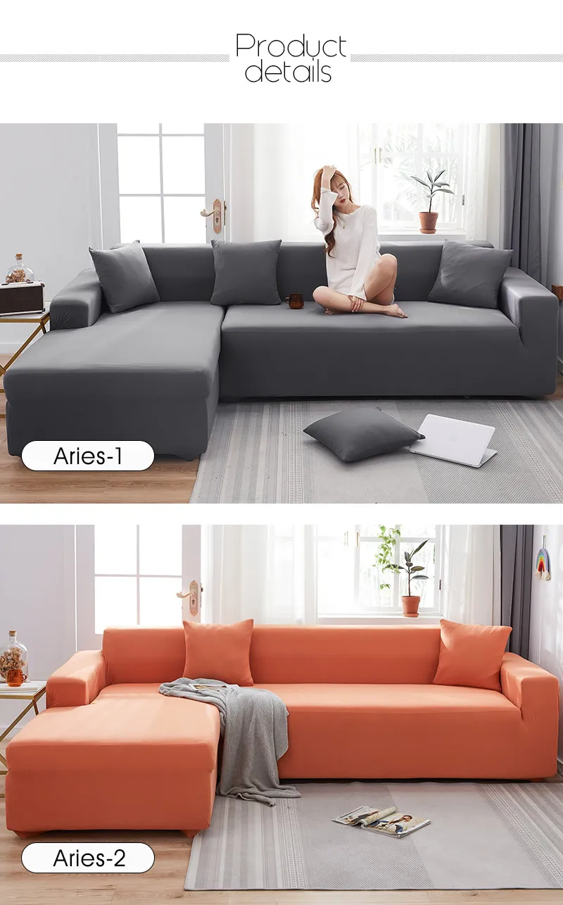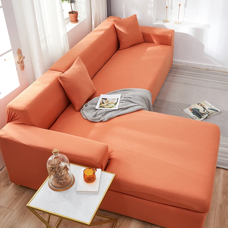 Однотонные Чехлы для угловых диванов для гостиной, эластичный чехол из спандекса для кушетки, растягивающийся чехол для дивана L-образной формы, необходимо купить чехол для дивана из 2 предметов