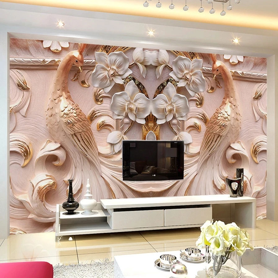 Пользовательские фотообои Самоклеящиеся 3D стереоскопический рельеф Павлин бабочка цветочные гостиная ТВ фон стены большие фрески