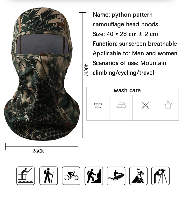 Балаклава для велоспорта, с узором питона, дышащая бандана для защиты от солнца, камуфляжный шарф, маска для мотоцикла