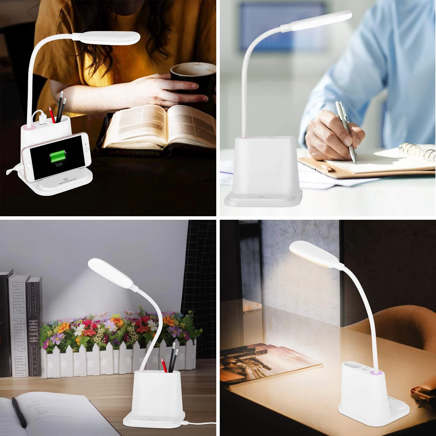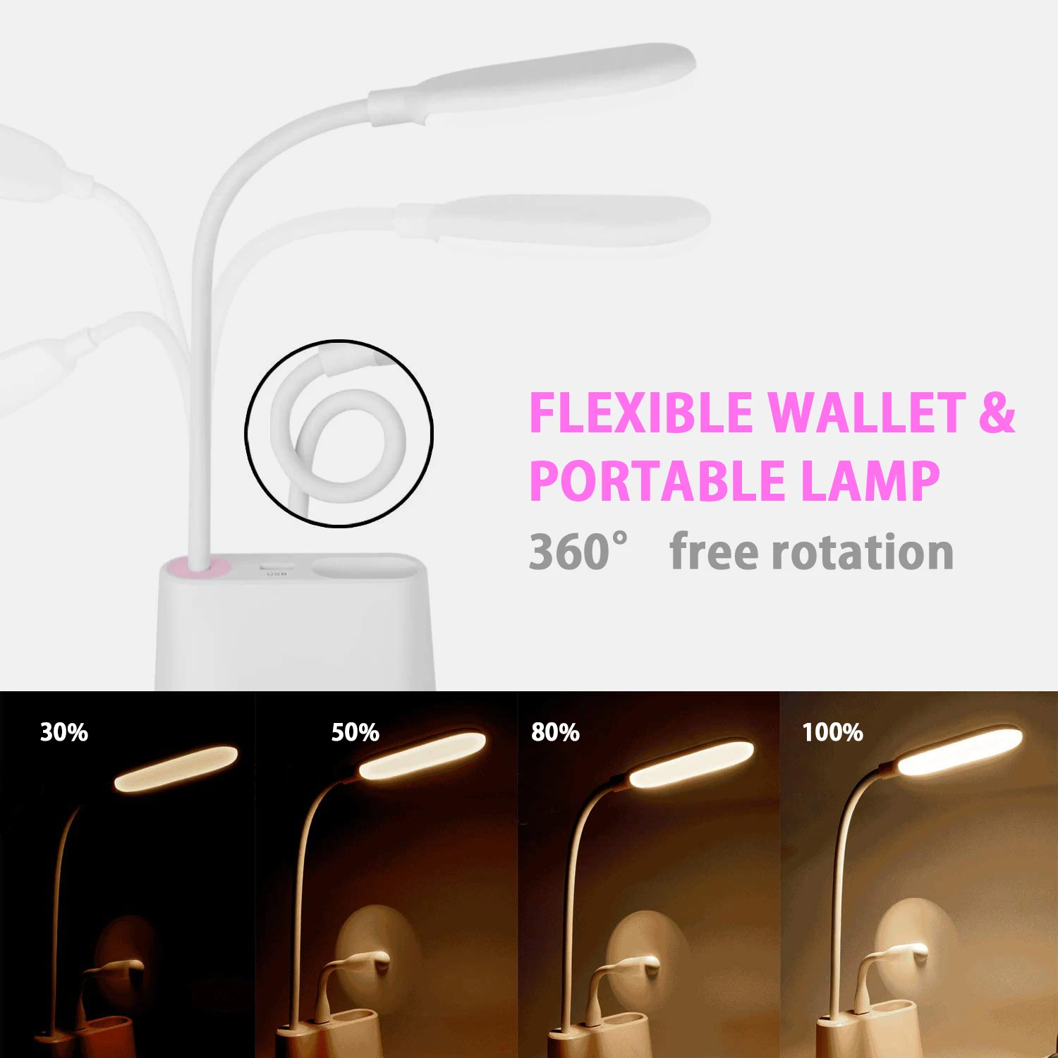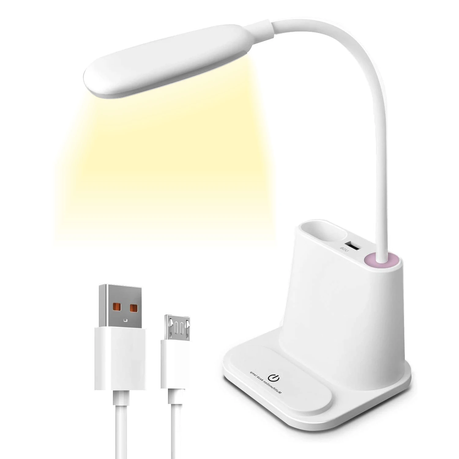 2. Многофункциональная настольная лампа не только как настольная лампа, базовая конструкция может использоваться как держатель Мобильный телефон, держатель для ручек для удобного хранения. Порт USB может обеспечивать питание для электронных продуктов, таких как мобильные телефоны, ночники, портативные вентиляторы и т. д.