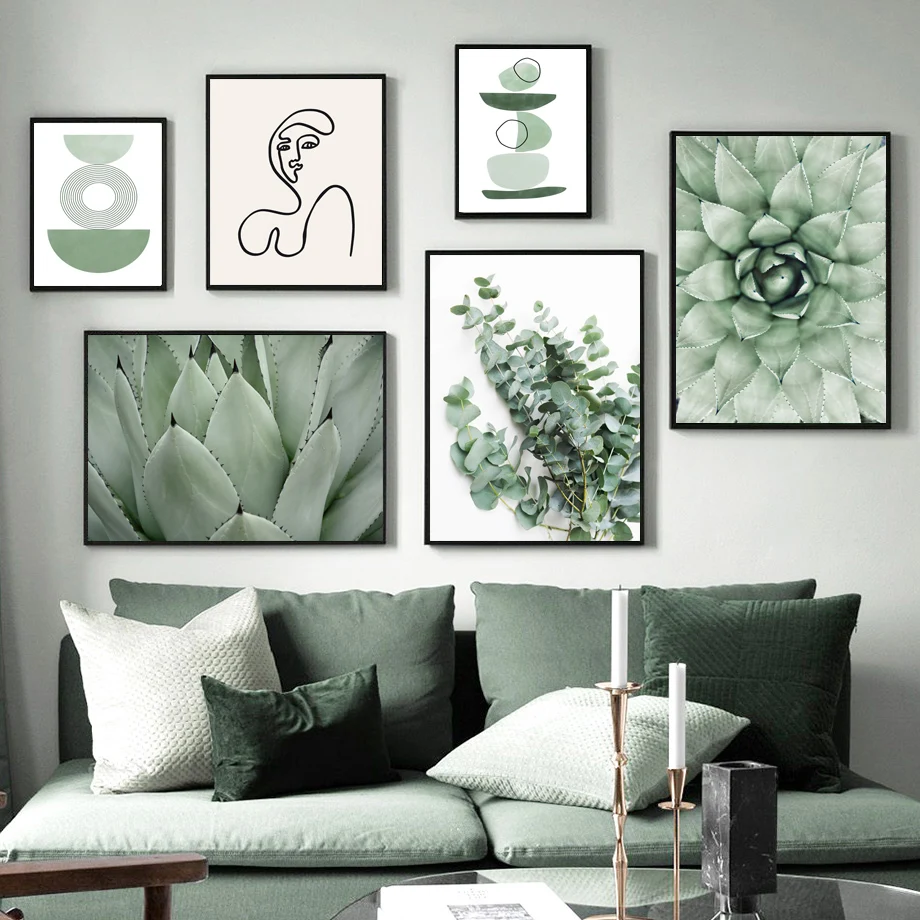Зеленые растения, Агава, кактус, геометрический абстрактный настенный художественный принт, холст, живопись, скандинавский постер для гостиной, Декор, настенные картины