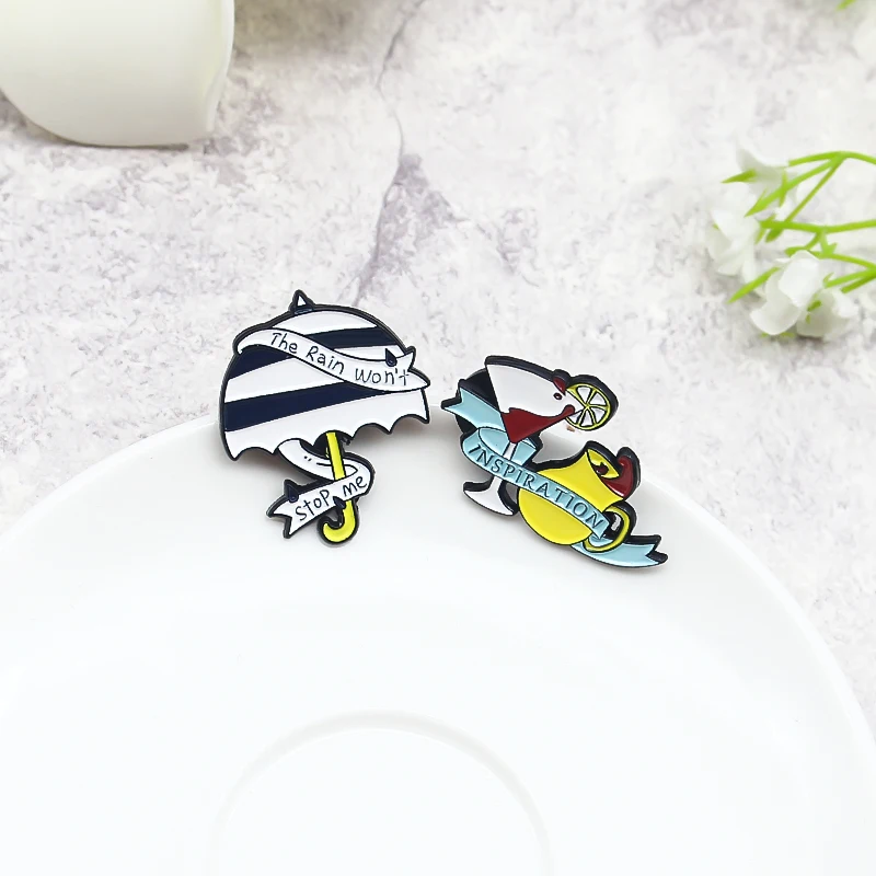 Брошь на лацкан с эмалью в виде зонтика и винного бокала