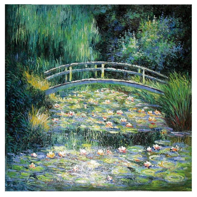 Алмазная живопись, 5D Лотос, пруд и мост, сделай сам, растительный пейзаж, алмазная живопись, вышивка крестиком стразы, мозаика, украшение для дома