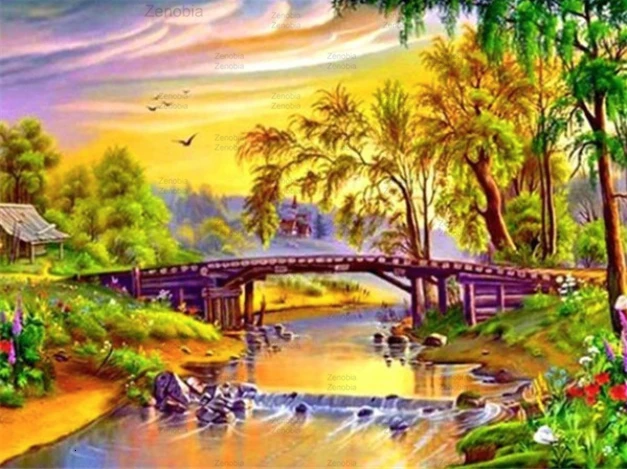 Алмазная вышивка, мост, городская мозаика, здание, мозаика, стразы,...