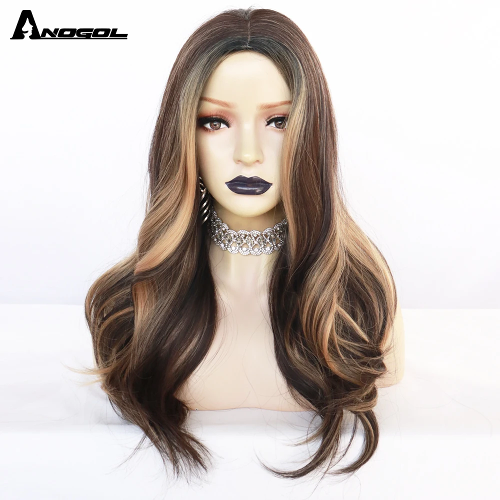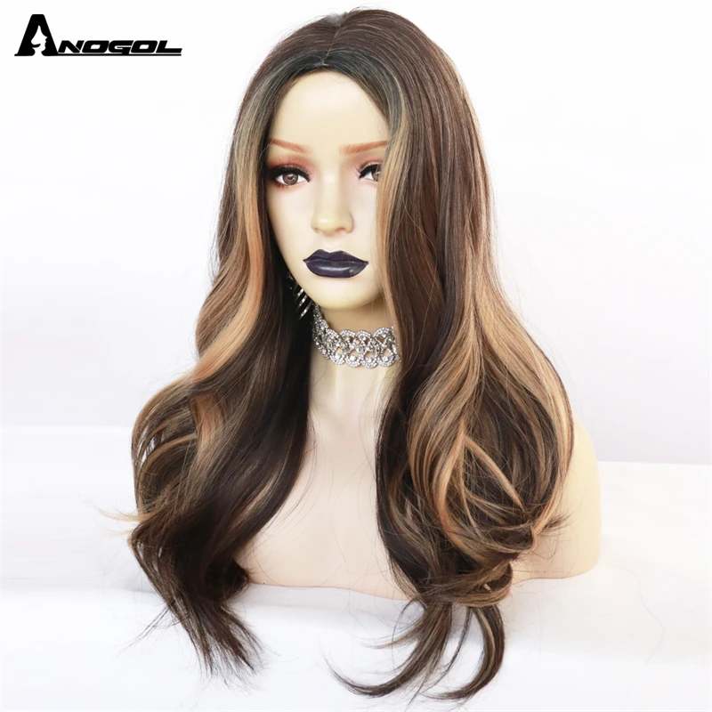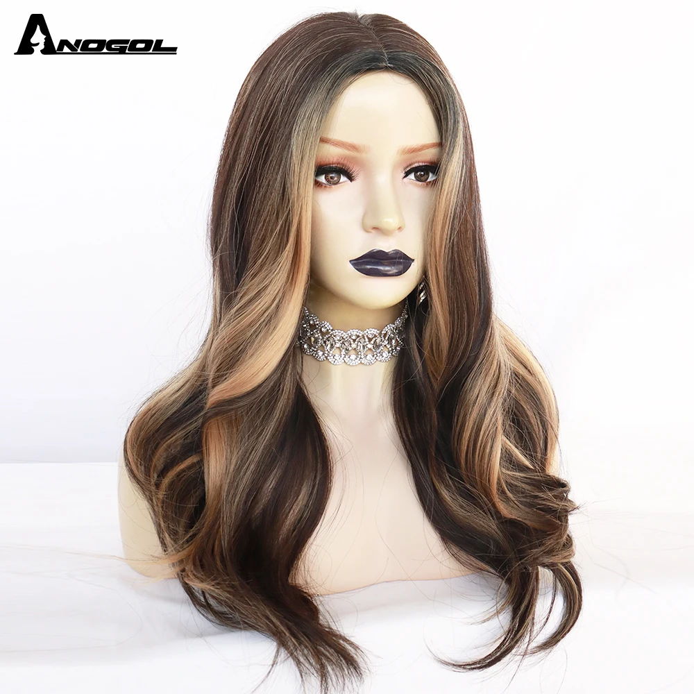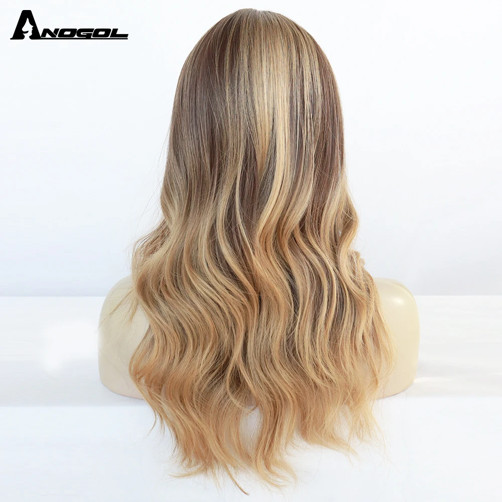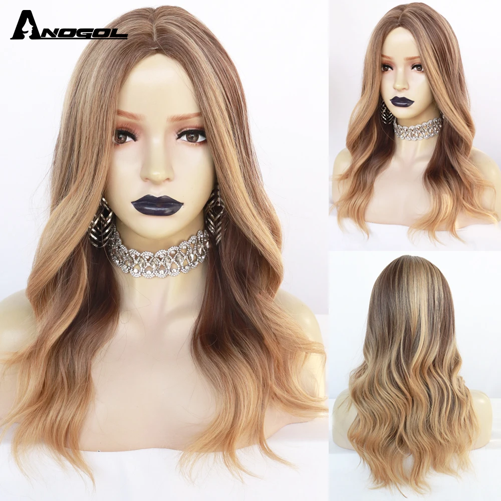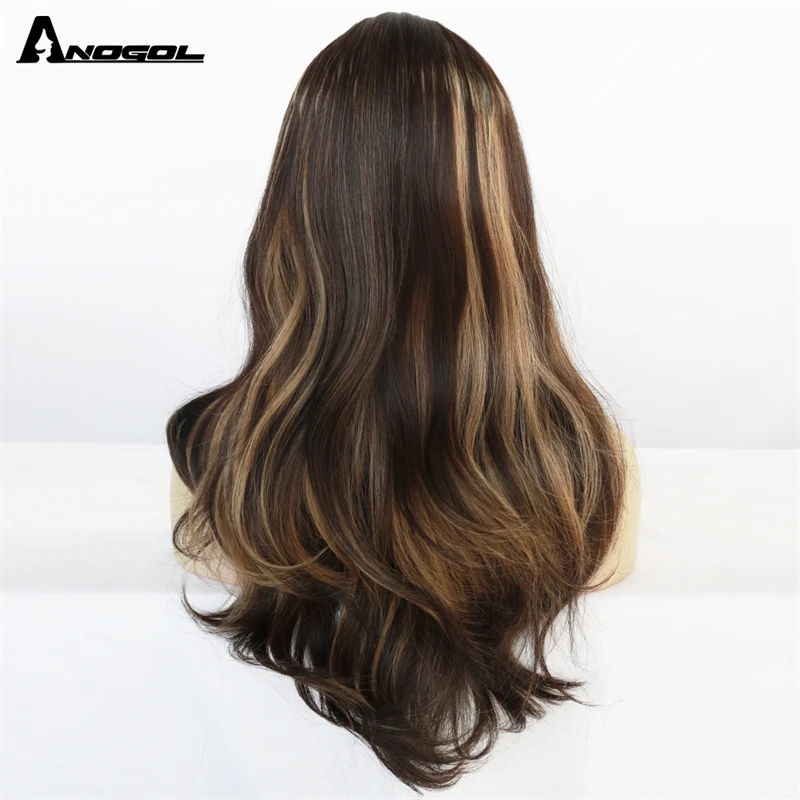 Женские синтетические парики Anogol, черные и коричневые парики средней длины, волнистые парики для женщин, модные термостойкие парики для вечерние