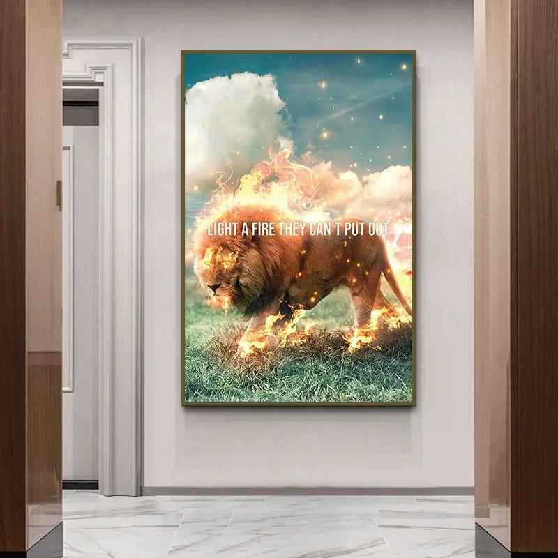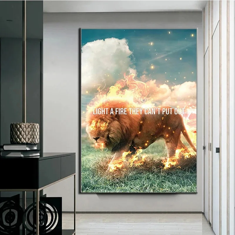 Картина на холсте с изображением Льва, животных, мотивационные цитаты, свет, огонь, они не могут вытащить картину на стену, современный Декор для дома и комнаты
