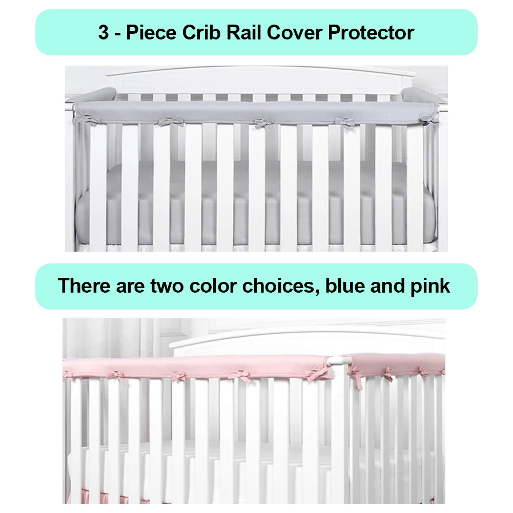 3 предмета детская кроватка рельсовая накладка протектор ребенка безопасное прорезывание зубов гвардии Обёрточная бумага для Стандартный кроватки боковые и передние рельсы кроватки Cover Protector Set