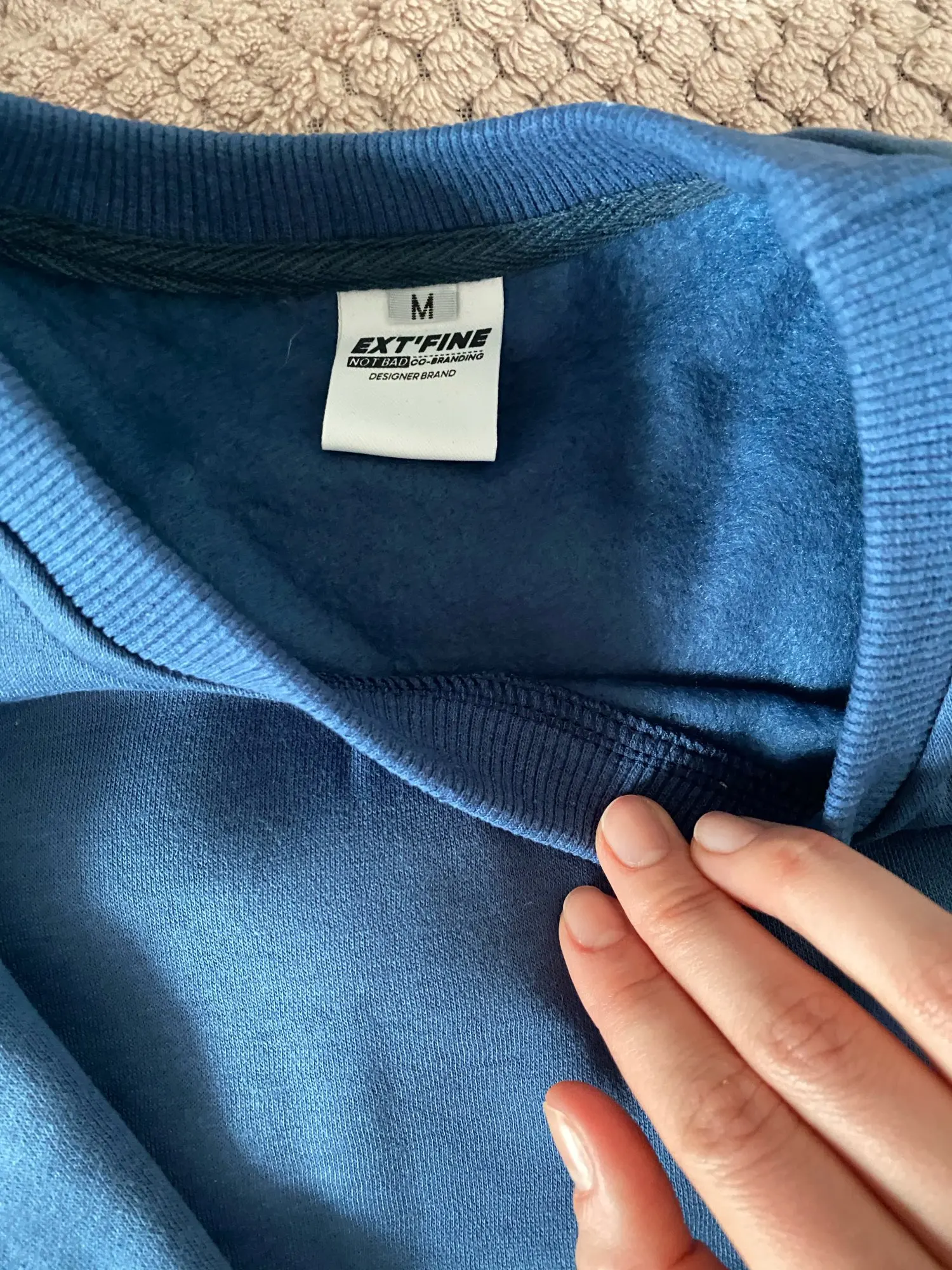 заказали два светшота в размере М. Синий оказался больше, чем зелёный. Прилично больше, хотя маркировка и там и там М. качество хорошее, с флисом внутри, все швы ровные и обработаны. на параметры 183 см рост и 73 кг выглядят как на фото