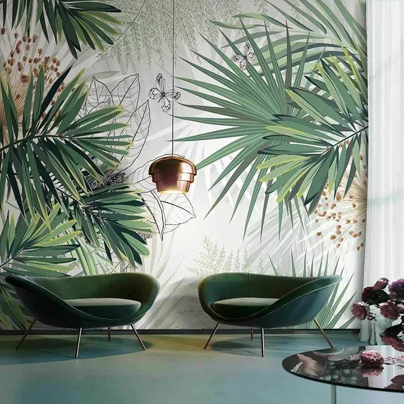 Настенные 3D-обои на заказ, Самоклеящиеся украшения для стен, тропические растения, тропический лес, пальмовый лист, спальня, столовая, гостиная