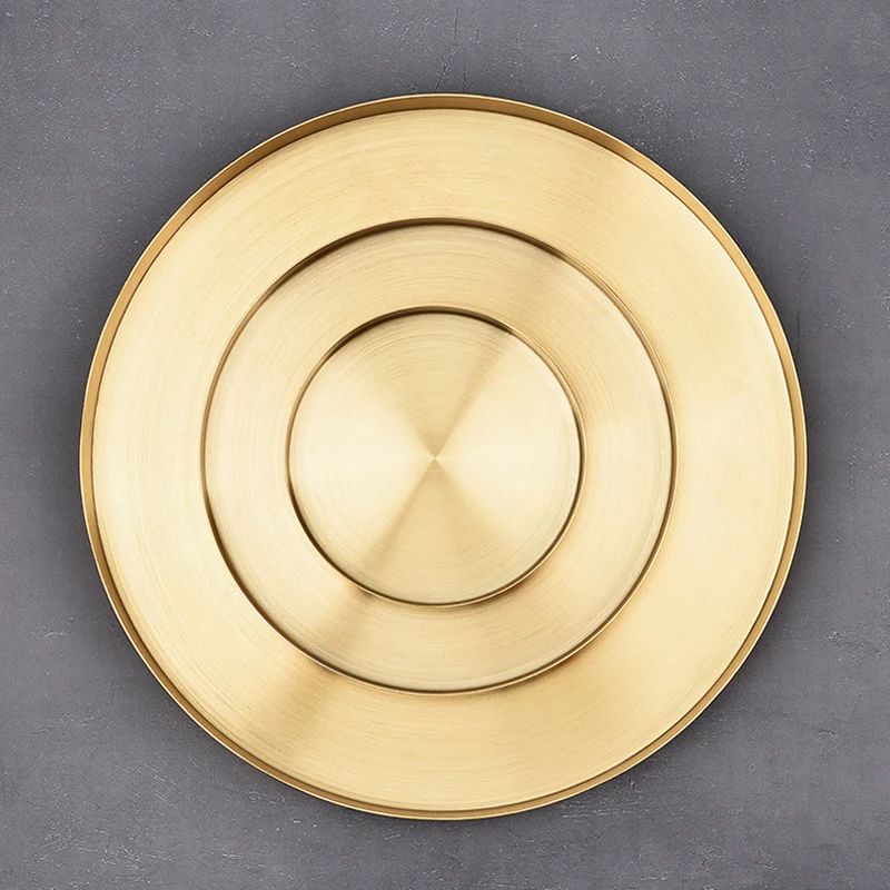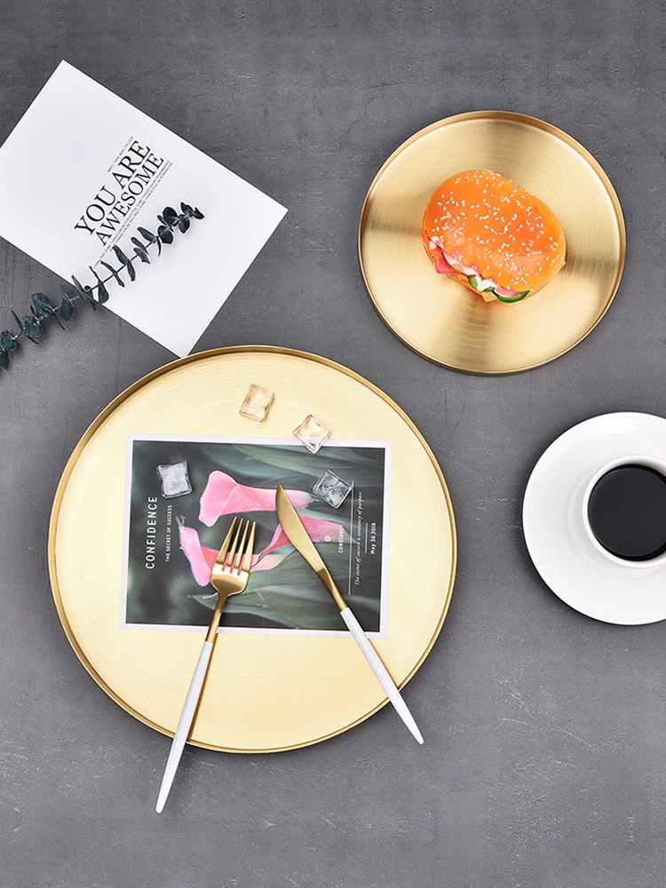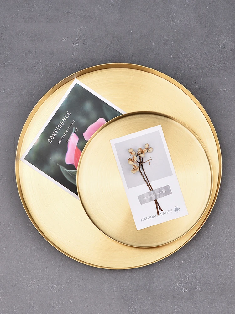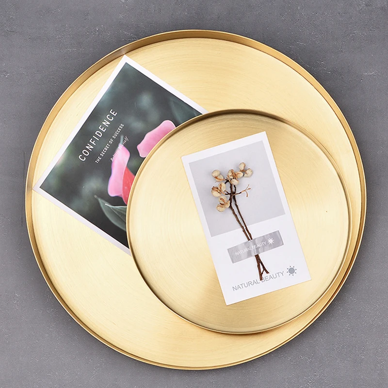 Современный золотой поднос для хранения из нержавеющей стали Настольная металлическая круглая форма Фруктовая тарелка косметический поднос для ювелирных изделий