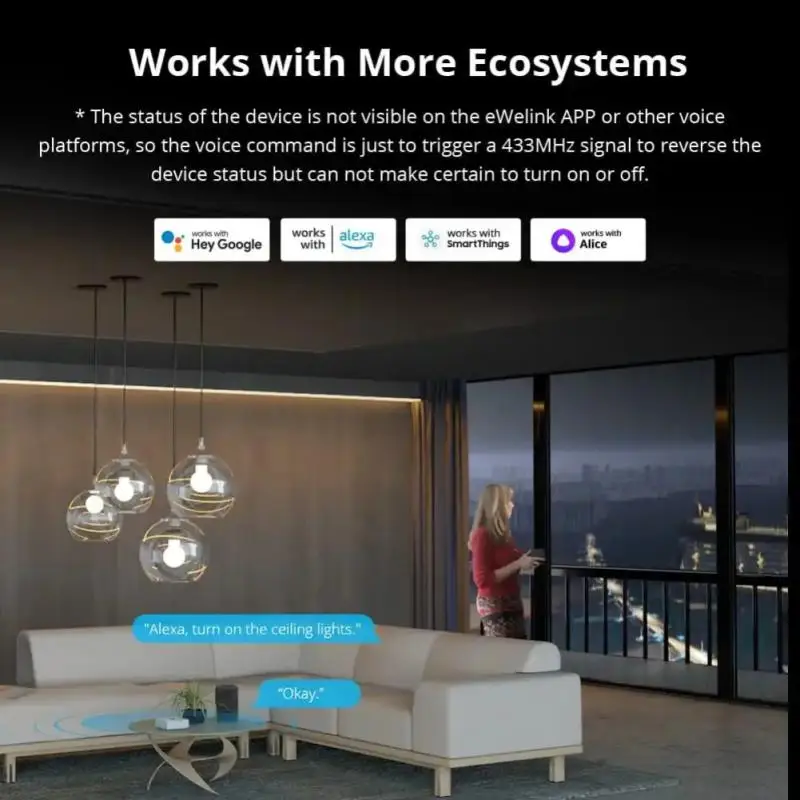 【Сильное подключение, безграничная возможность 】 мост поддерживает добавление устройств RF 433MHz до 64, которые выпустили SONOFF, таких как PIR3-RF датчик движения PIR и DW2-RF беспроводной датчик двери/окна, делает ваш дом умнее.