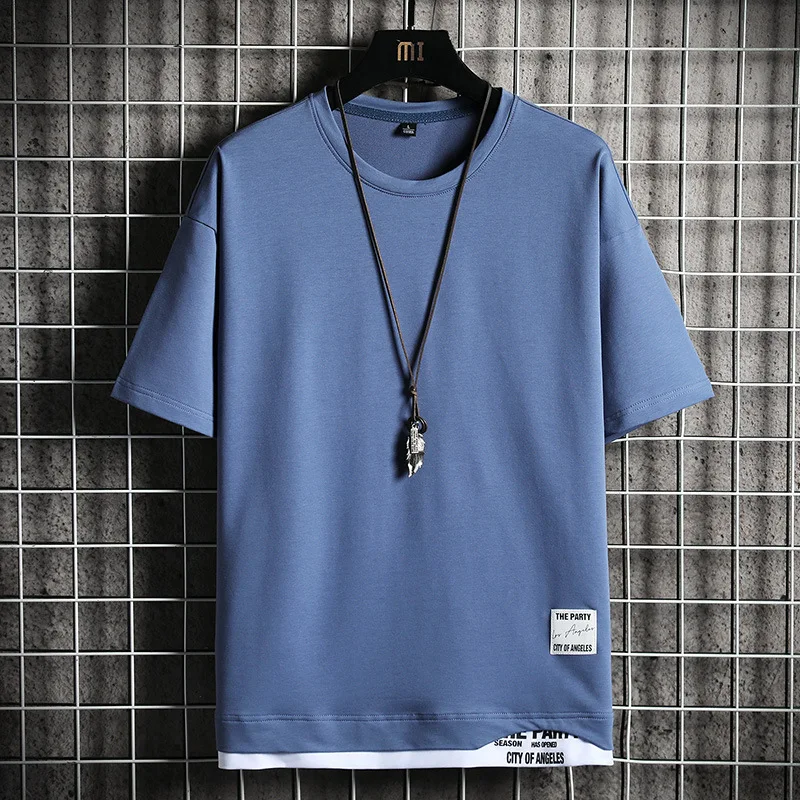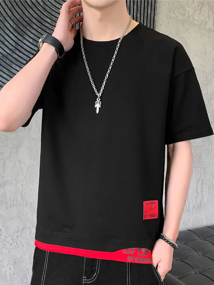 Мужская футболка с коротким рукавом, однотонная Приталенная футболка, стильный топ с накладными цветами, лето 2021