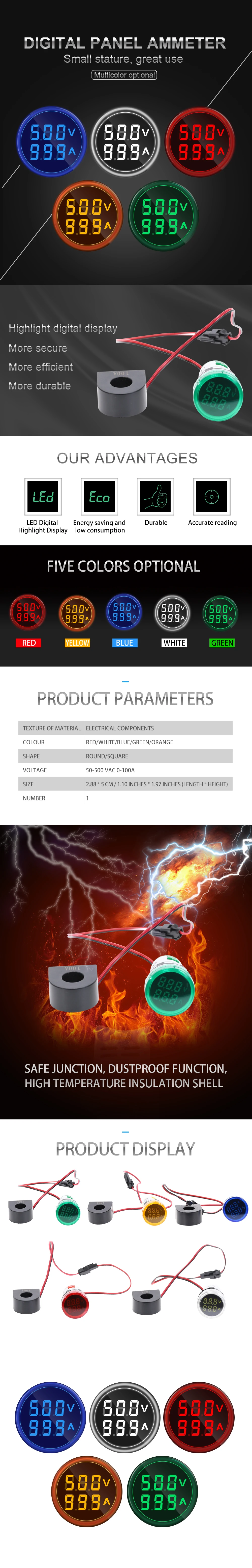 Светодиодный цифровой вольтметр, амперметр, герц, Гц, измеритель переменного тока 50-500 В, 0-а, напряжение, ток, амперметр, тестер, детектор, светильник индикатор