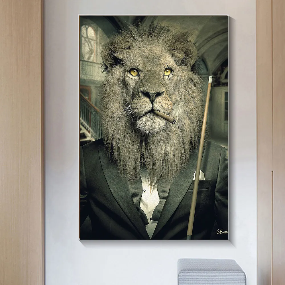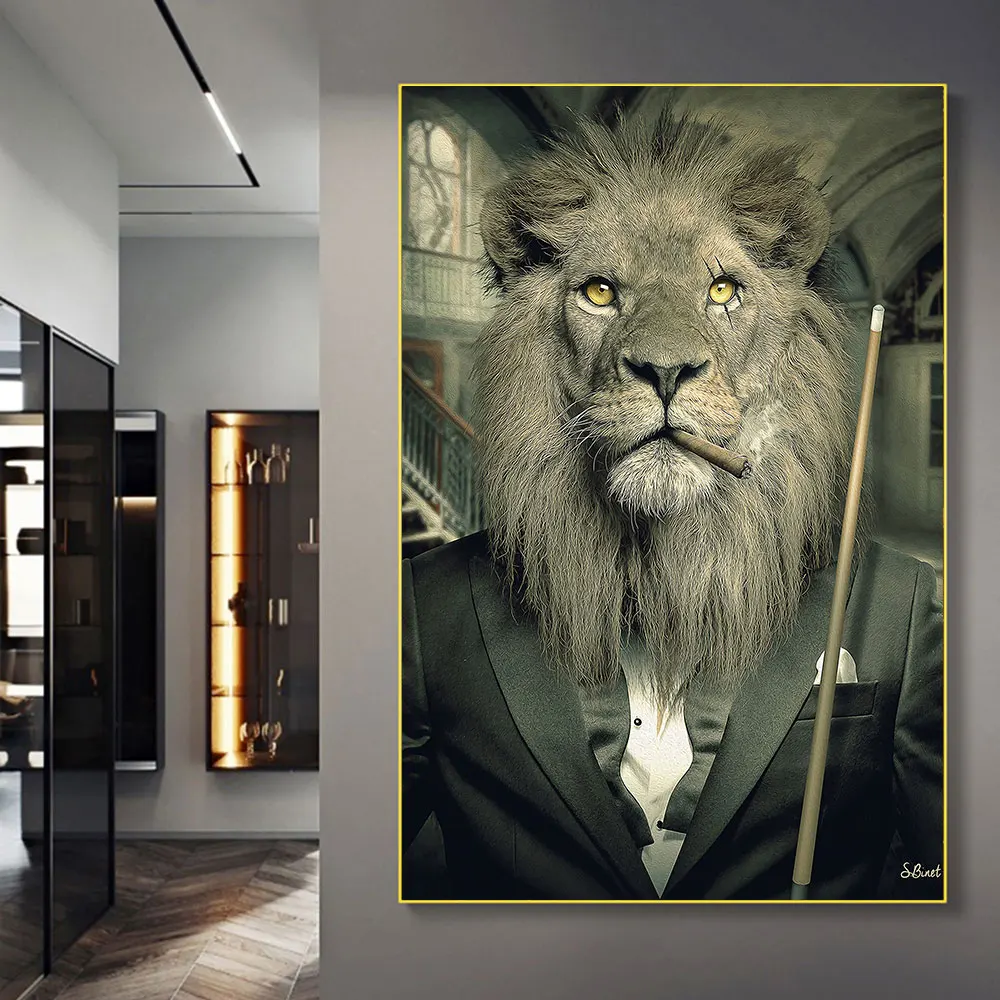 Плакаты с волком, обезьяной, Лев с ореолом и принтами животных, Нас...